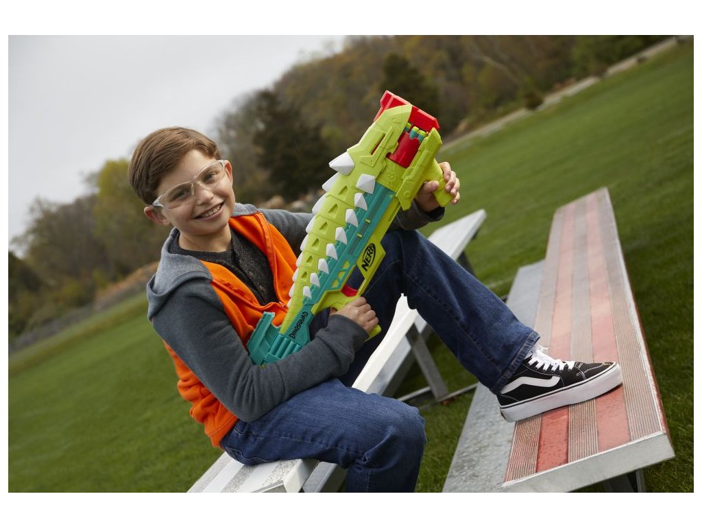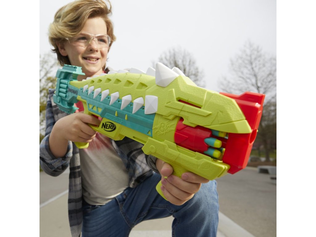 Rozšiřte řady elitní jednotky DinoSquad a spojte síly s legendárními dinosaury! Využijte mimořádnou sílu dinosauřích titánů a zažijte s nimi úžasná dobrodružství! Tento blástr Nerf DinoSquad obsahuje rotační bubnový zásobník na 8 pěnových nábojů, které můžete všechny použít proti soupeřům. Natahování probíhá pomocí gripu pumpováním dozadu a dopředu. Určitě oceníte i prostor pro náhradní pěnové náboje na pažbě, které umožní znovu rychle nabít zásobník. V ceně je 16 pěnových nábojů Nerf Elite.