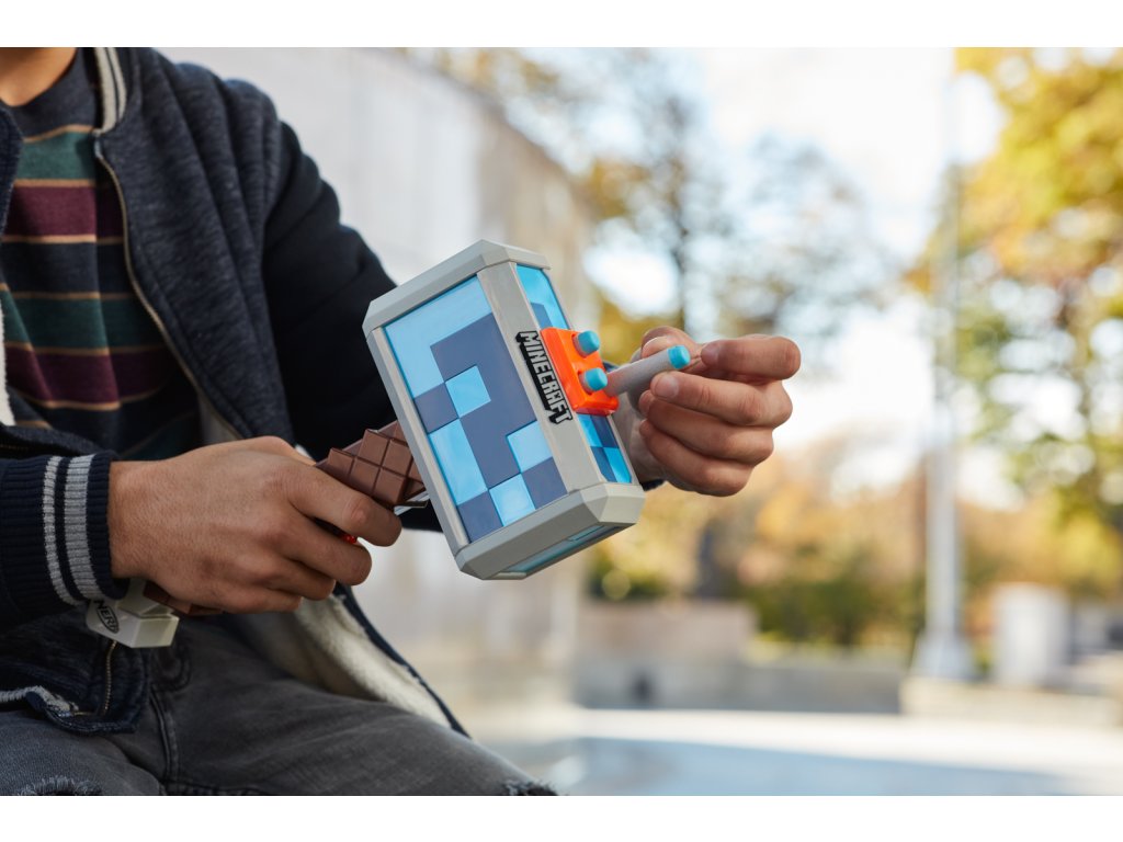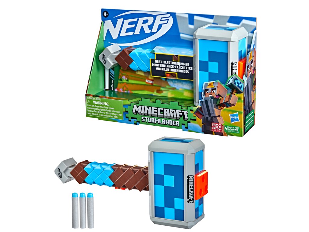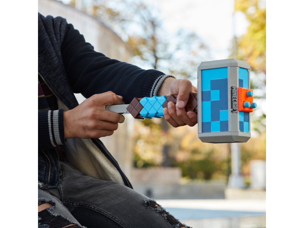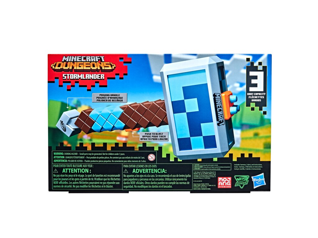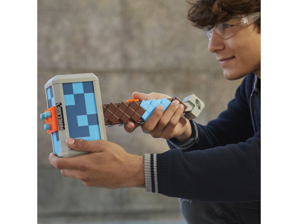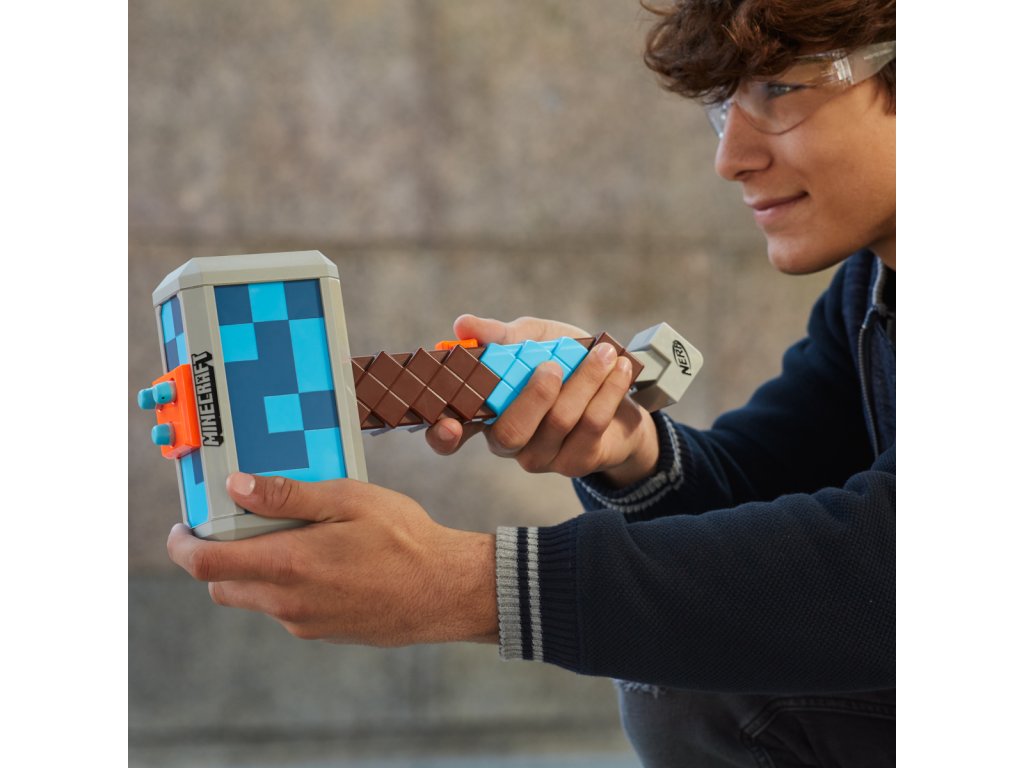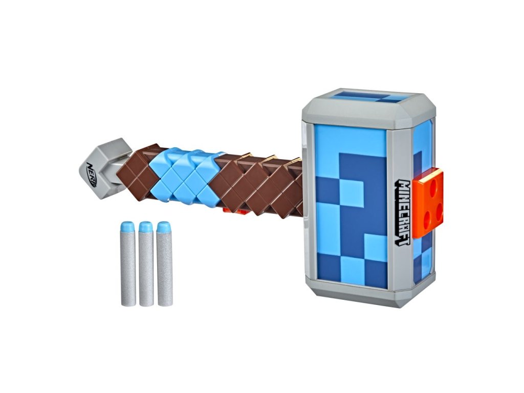 hrou Minecraft. Vystřeluje 3 šipky za sebou a obsahuje 3 šipky Nerf Elite. Nabijte 3 šipky, zatáhněte za rukojeť, stiskněte tlačítko a vystřelte.
