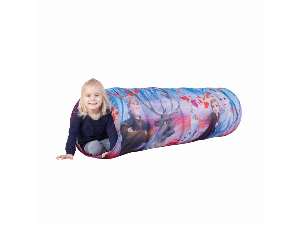 Zábavný lehce složitelný hrací tunel v licenci Frozen podporuje dětskou představivost a aktivní hru. Dítě ním může prolézat, plazit se nebo si hrát uvnitř. Skládací tunel lze snadno uschovat a je vhodný pro vnitřní i venkovní použití. Rozměry tunelu jsou 145x50 cm. Vhodné pro děti od 2 let.