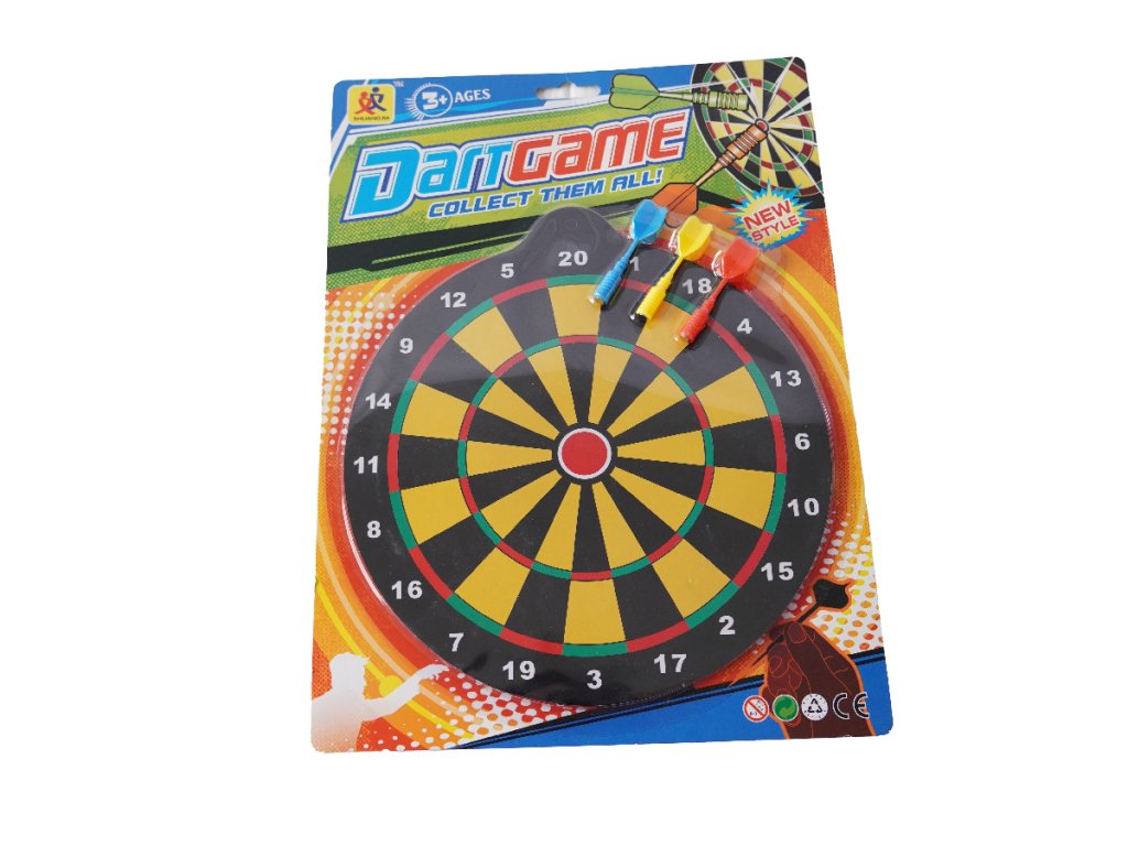 Sada terče se šipkami na suchý zip. Terč lze pověsit na zeď, dveře, skříň a šipky se při vhození přichytávají pomocí suchého zipu.