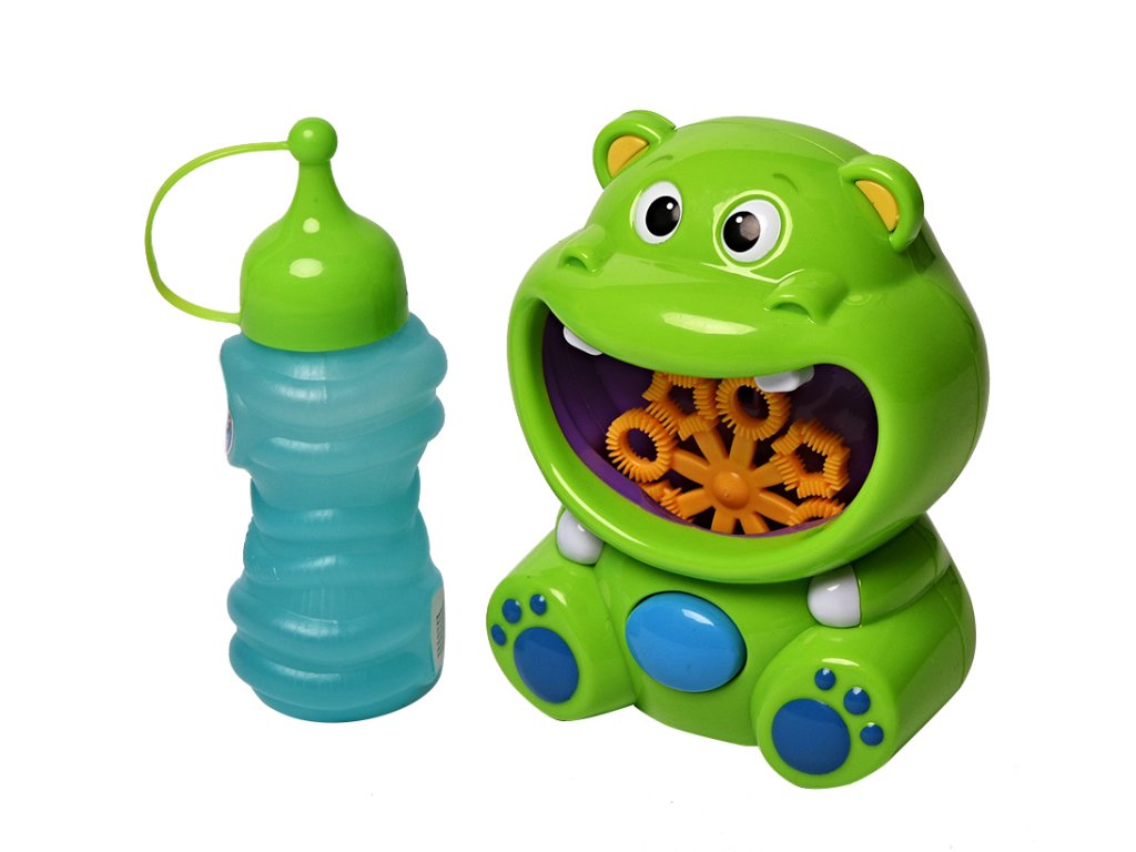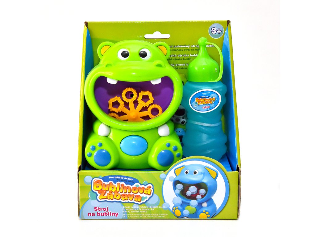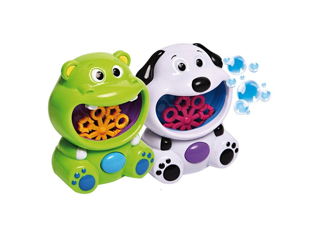 Stroj na bubliny s motivem zvířátka. Nalij bublifuk do strojku a sleduj, kolik se valí bublin. Hodně bublin bez námahy.