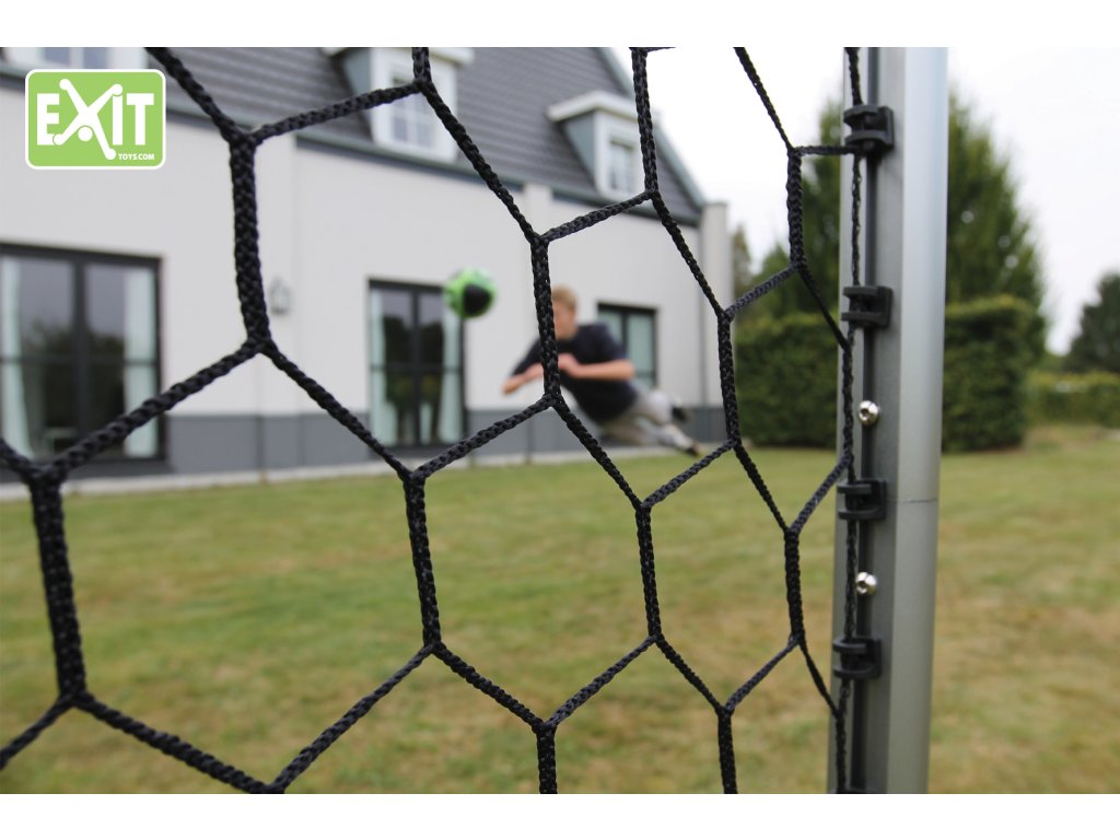Fotbalová branka je dále vybavena masivní černou sítí, která má krásný hexagonální vzor. Montuje se velmi snadno pomocí vysoce kvalitních černých držáků nasunutých do hliníkového rámu. Síť se může namontovat i demontovat aniž by jste museli rozkládat rám brány.