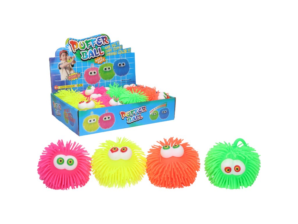 Mačkací míček blikající. Průměr 10 cm. 1xAG3 (LR41) baterie zabudovaná uvnitř hračky, nelze vyjmout. 12 ks display box. 4 varianty - růžová, žlutá, červená, zelená.