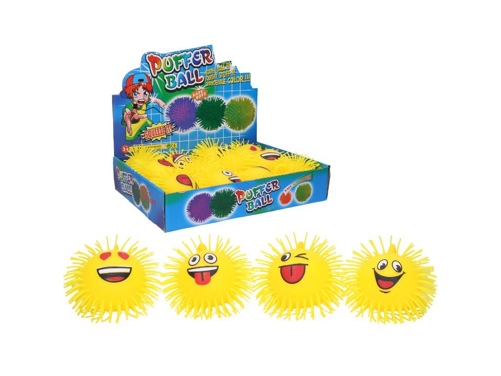 Mačkací míček s třásněmi. Velikost 10 cm. Blikající. Baterie jsou zabudované uvnitř hračky, nelze měnit.