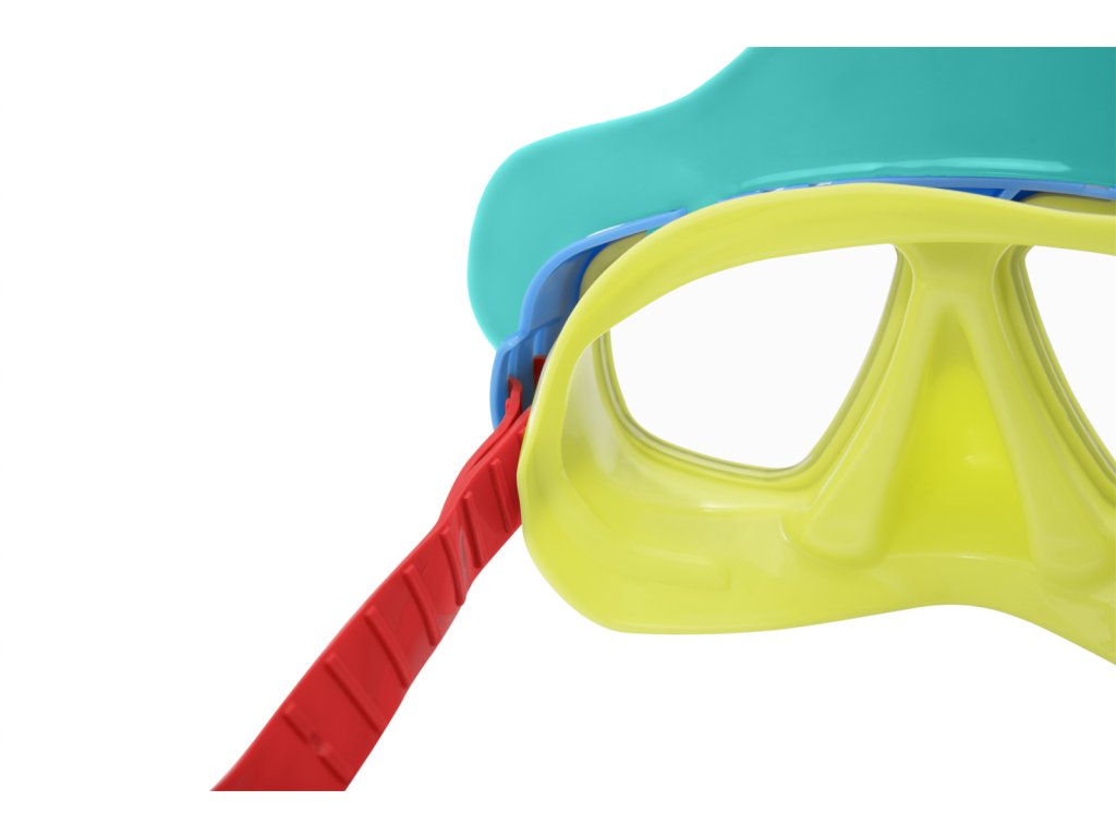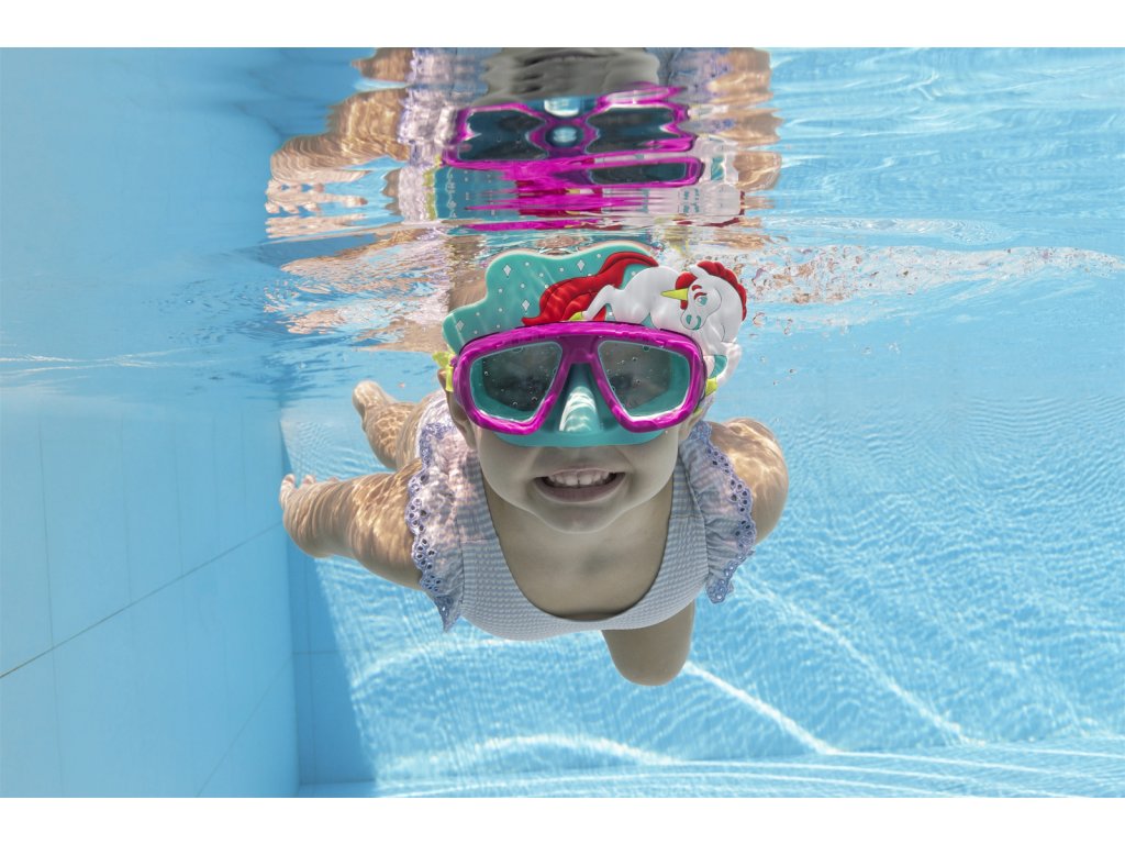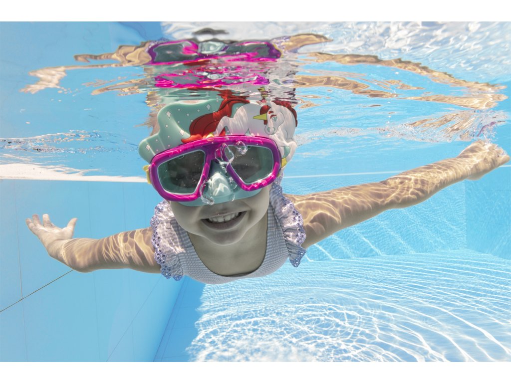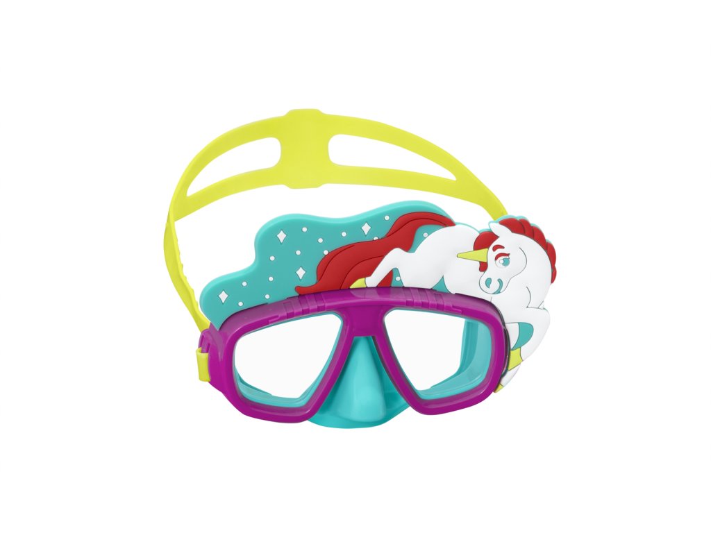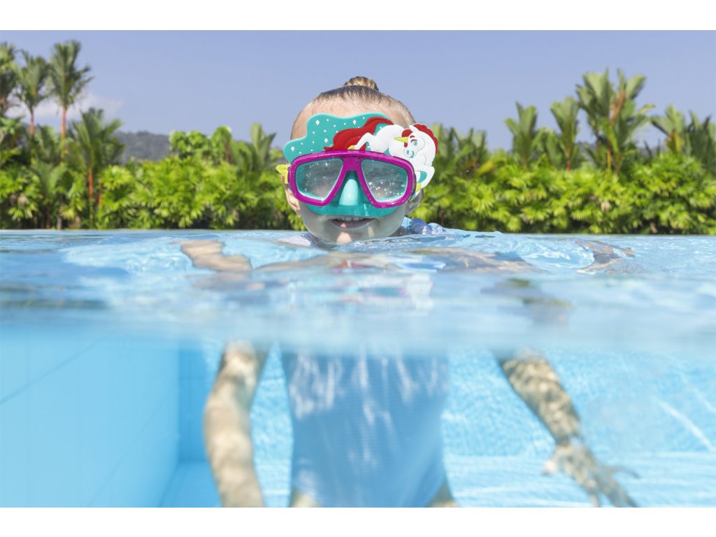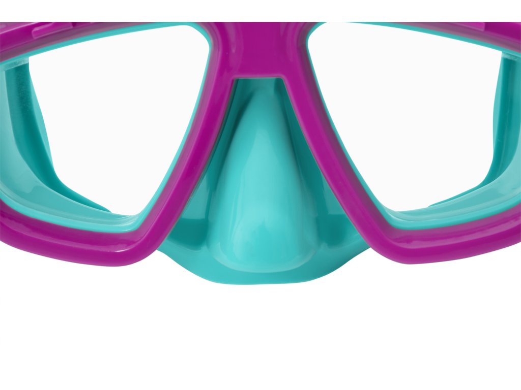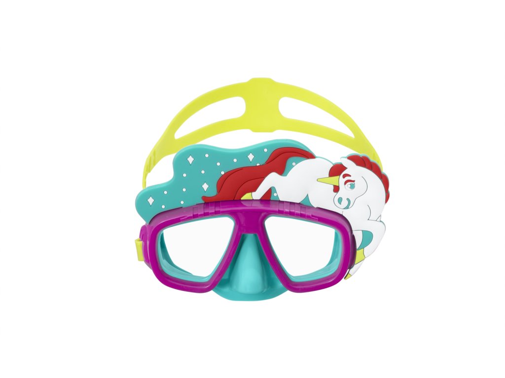 Šnorchlovací maska Aquapals. Brýle mají polykarbonátové čočky s ochranným povrchem chránícím proti UV záření. Dvojitý lem pro přesné přitisknutí a zabránění průsaku. Plně nastavitelný dělený náhlavní pásek. Šnorchl má měkký a pohodlně přiléhající náustek. 3 barevné provedení v podobě zvířat. 100 % bez latexu. Věk: 3+