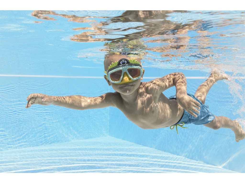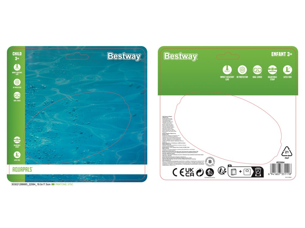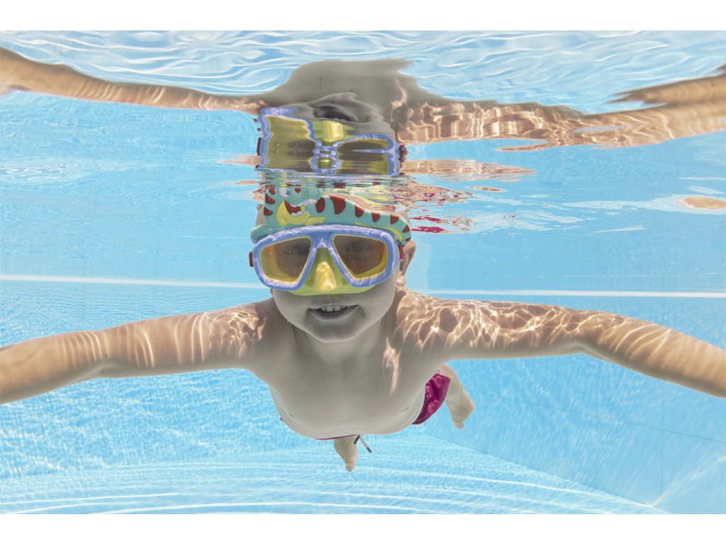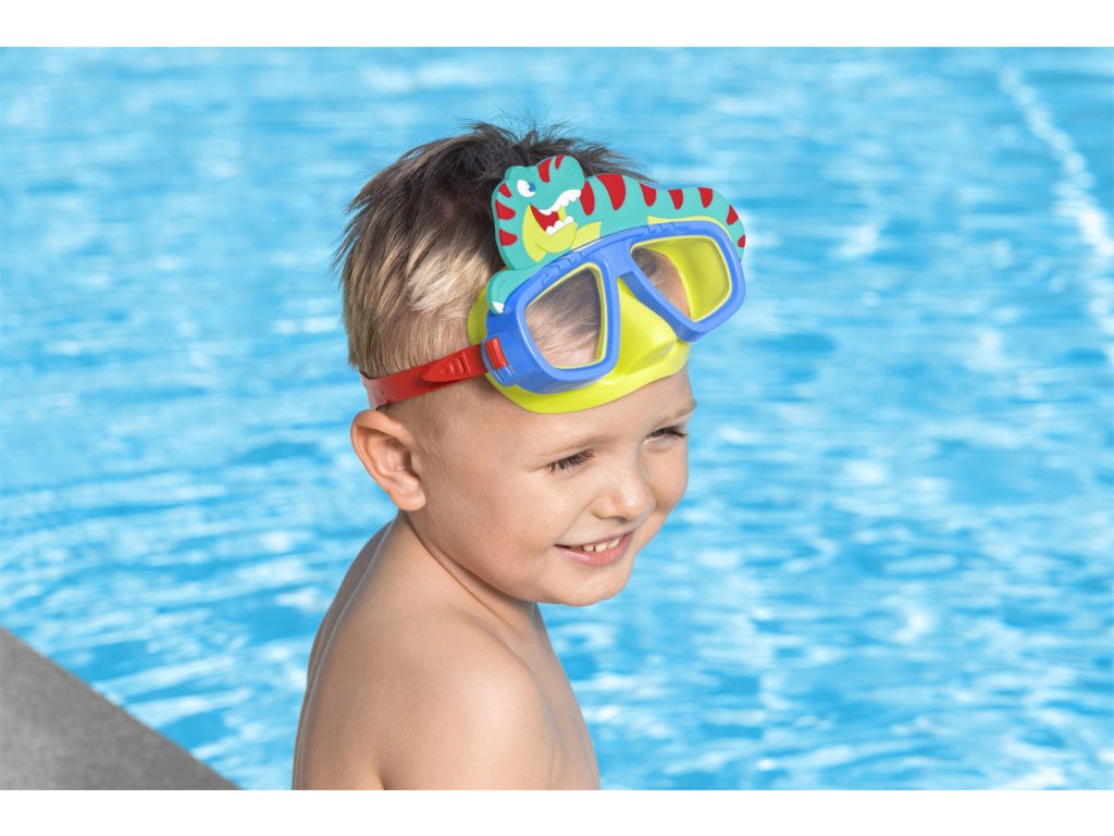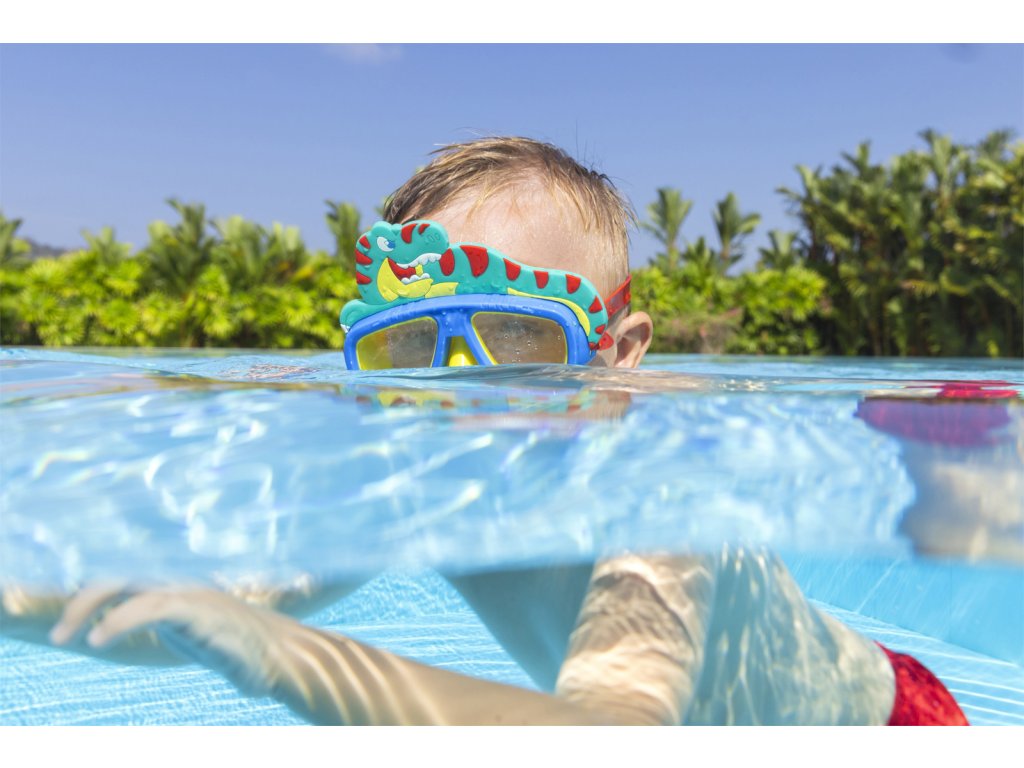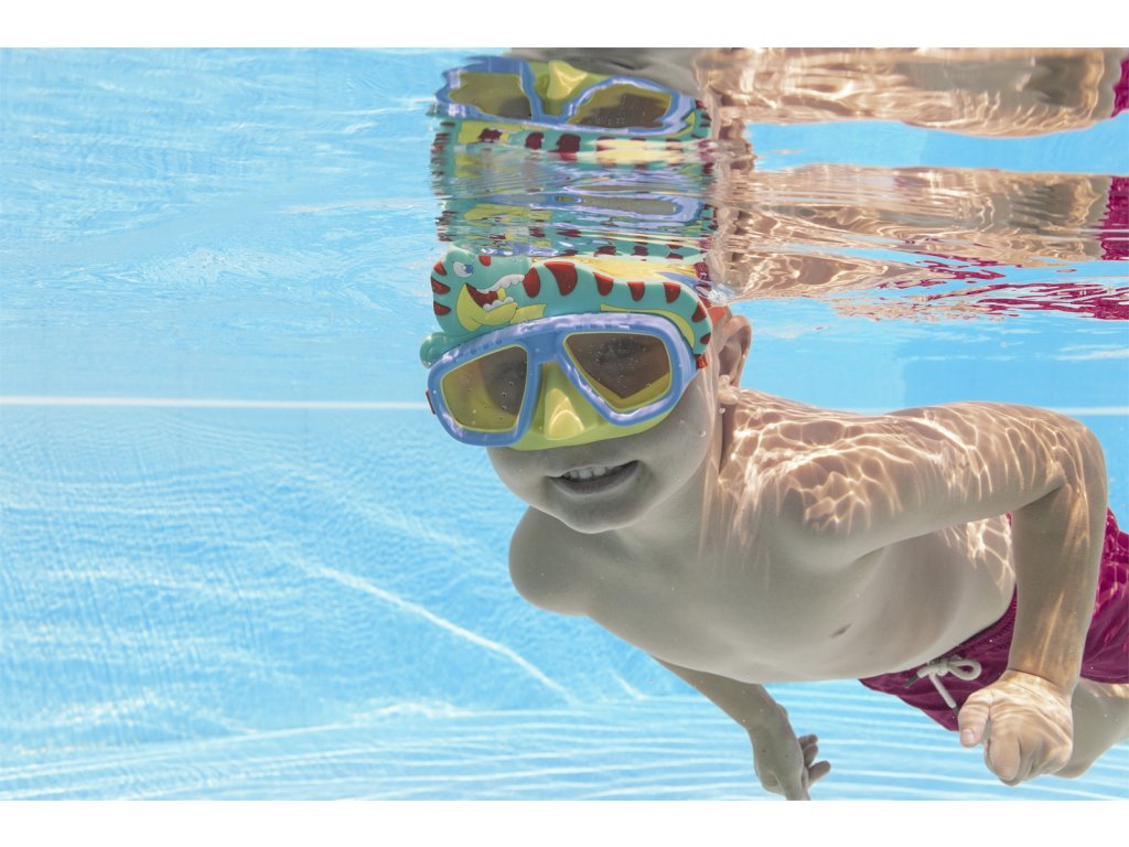 Šnorchlovací maska Aquapals. Brýle mají polykarbonátové čočky s ochranným povrchem chránícím proti UV záření. Dvojitý lem pro přesné přitisknutí a zabránění průsaku. Plně nastavitelný dělený náhlavní pásek. Šnorchl má měkký a pohodlně přiléhající náustek. 3 barevné provedení v podobě zvířat. 100 % bez latexu. Věk: 3+