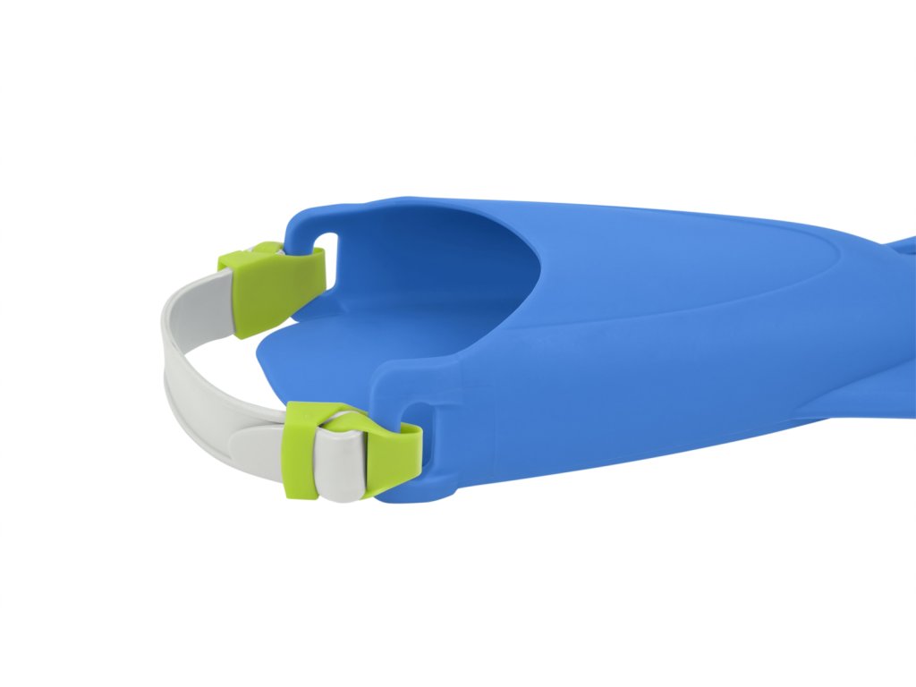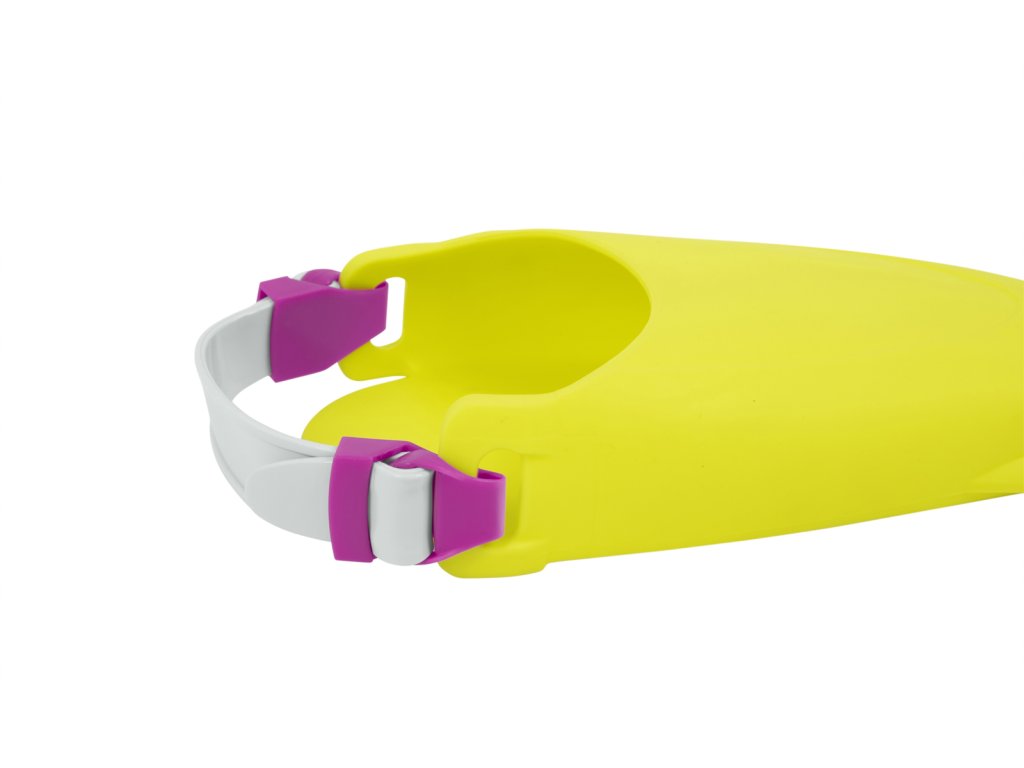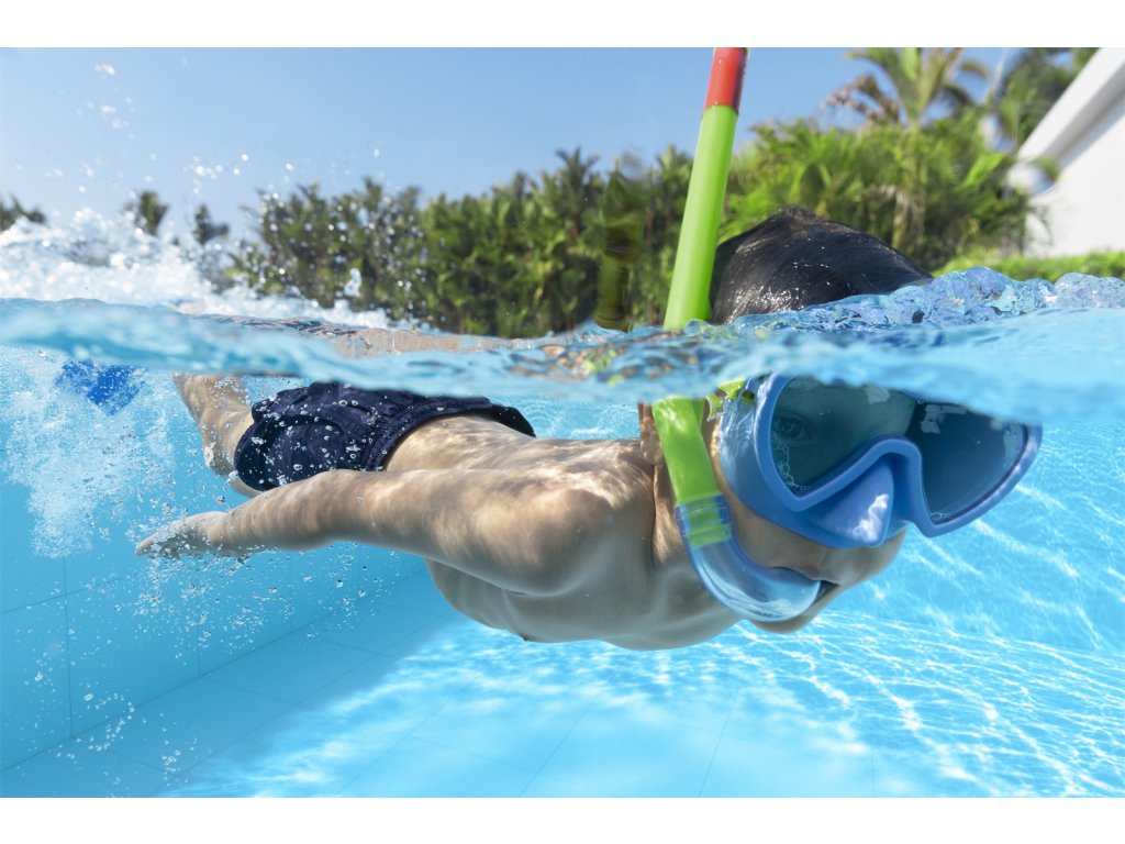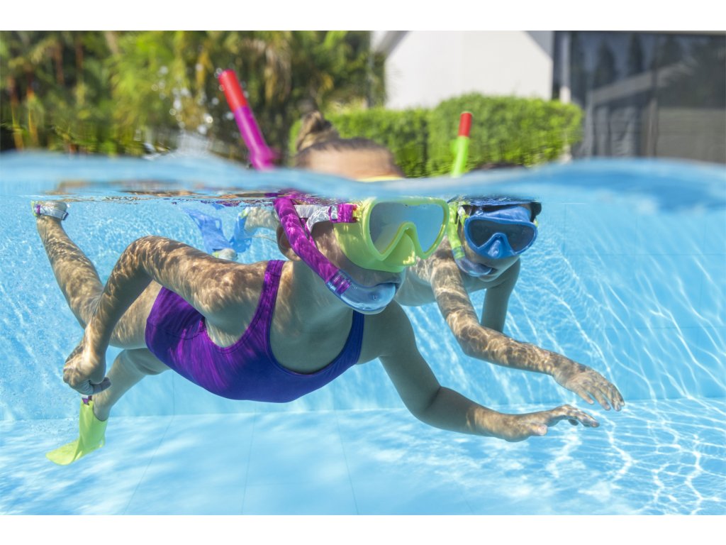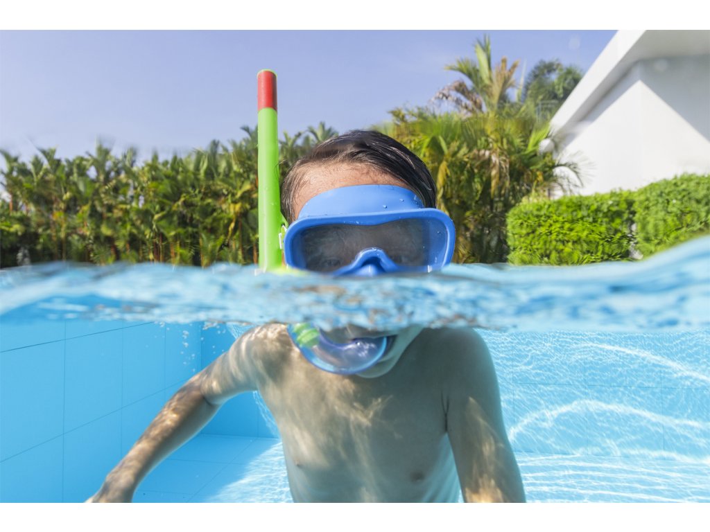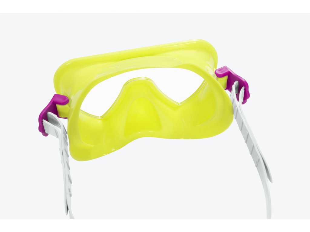 Bestway šnorchlovací set Essential – ploutve, brýle, šnorchl. Brýle mají bezpečnostní čočky s ochranným povrchem chránícím proti UV záření. Měkký lem bránící vnikání vody. Plně nastavitelný pásek na hlavu. Šnorchl má tvarově přizpůsobivý náustek. Ploutve s nastavitelným patním páskem jsou ve velikostech: EUR (24-27), USA (8-10). 100 % bez latexu. 2 barevné provedení - žluto-růžová, modro-zelená Obsahuje: 1 brýle, 1 šnorchl, 1 ploutve. Věk: 3+