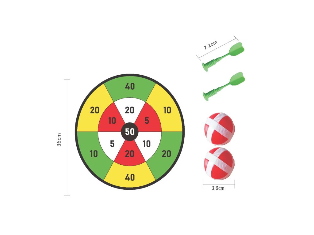 Terč na, které se šipky přichytí suchým zipem.
