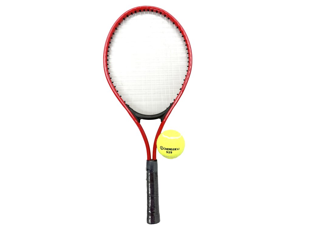Tenisová raketa s tenisákem set. Jedna raketa s jedním tenisákem. Délka 53 cm.