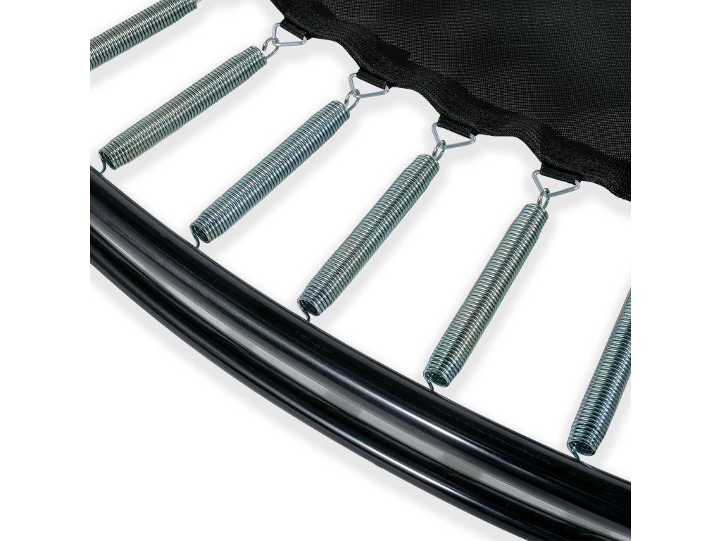 extra dlouhé (25cm) a široké dvoukónické pružiny zaručují vysoký a pohodlný odraz. Trampolína má robustní vzhled, černá barva s jemně barevnými detaily a reflexním lemem je skvostem v každé zahradě. Na trampolíně Dynamic je jednoduché předvádět ty nejtěžší triky.