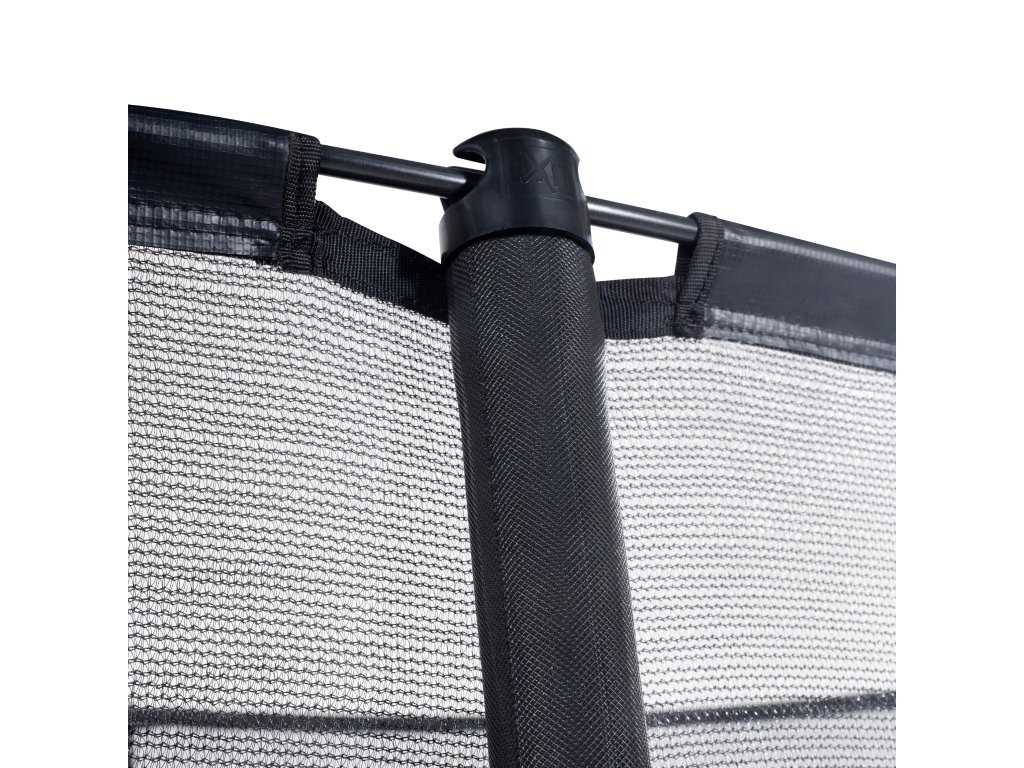 je držena dvěma laminátovými pruty, jak v horní části trampolíny, tak ve spodní části trampolíny, která zaručují, že síť bude vždy řádně vyšponována. Tyče držící ochrannou síť jsou opatřeny pěnovou ochranou se vzorem karbonu.