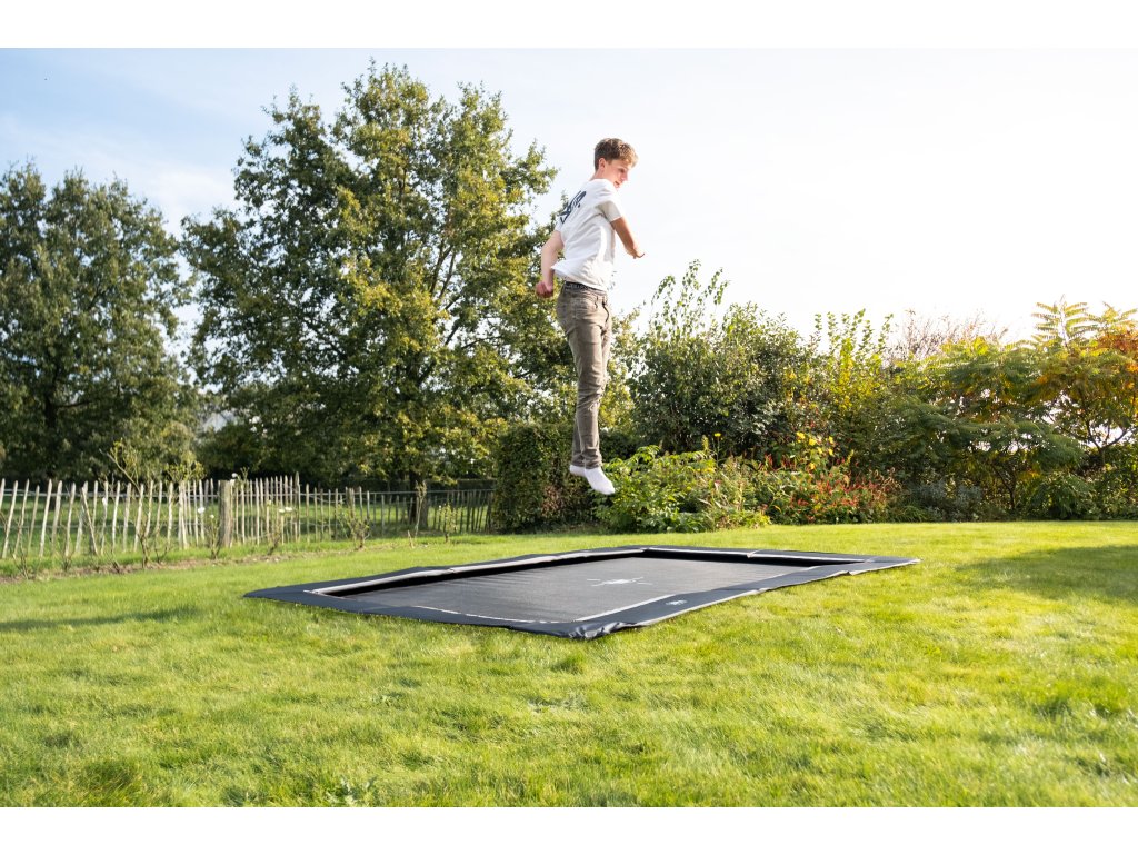 Trampolína zároveň se zemí Exit InTerra je matně černá kruhová zapuštěná trampolína s kompaktními rozměry, která se hodí do každé zahrady. Tato trampolína je dodávána bez ochranné sítě a je zcela zapuštěna do trávy, což jí dodává elegantní a suprový vzhled a je díky tomu jednoduchý vstup do trampolíny a můžete začít hned skákat. Chytrý design trampolína zajišťuje extra tiché a plynulé skákání, které Vám umožní vychutnat si každý odraz v naprostém klidu.