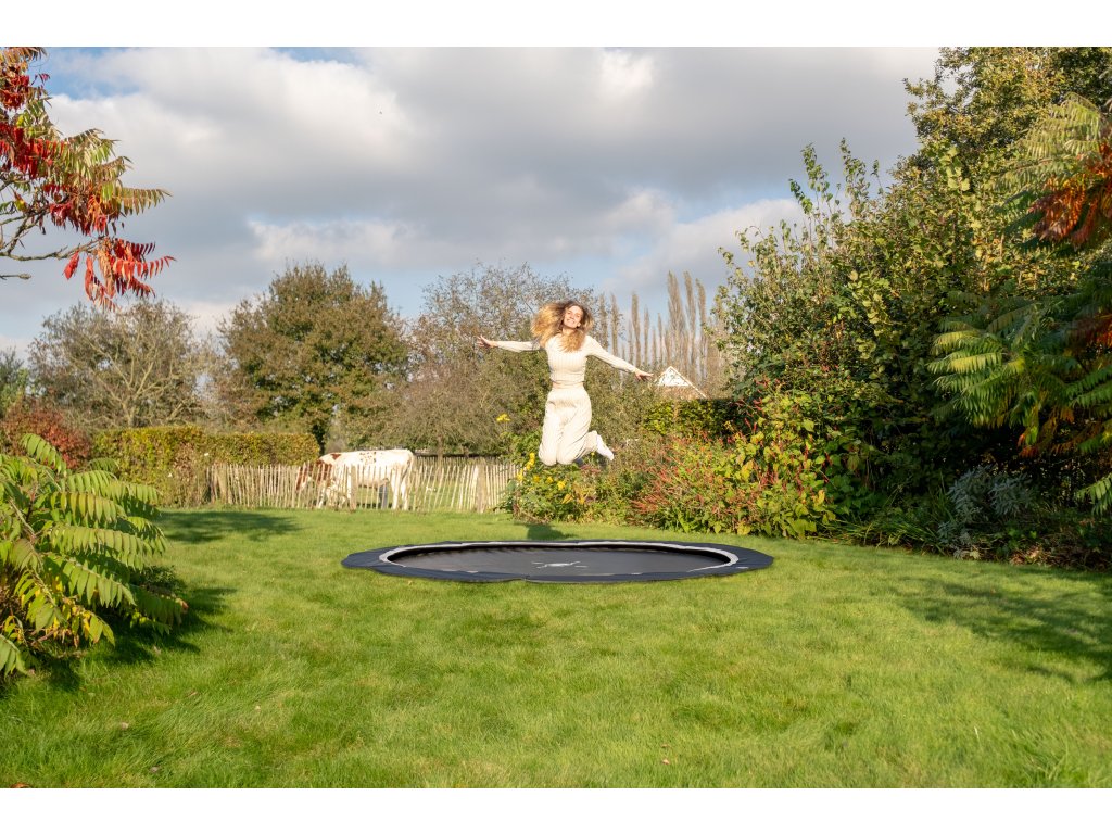 Trampolína zároveň se zemí Exit InTerra je matně černá kruhová zapuštěná trampolína s kompaktními rozměry, která se hodí do každé zahrady. Tato trampolína je dodávána bez ochranné sítě a je zcela zapuštěna do trávy, což jí dodává elegantní a suprový vzhled a je díky tomu jednoduchý vstup do trampolíny a můžete začít hned skákat. Chytrý design trampolína zajišťuje extra tiché a plynulé skákání, které Vám umožní vychutnat si každý odraz v naprostém klidu.