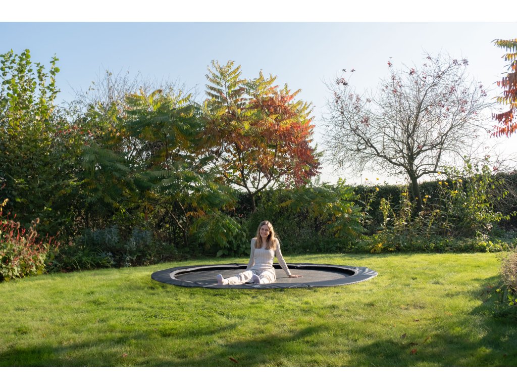 Trampolína zároveň se zemí Exit InTerra je matně černá kruhová zapuštěná trampolína s kompaktními rozměry, která se hodí do každé zahrady. Tato trampolína je dodávána bez ochranné sítě a je zcela zapuštěna do trávy, což jí dodává elegantní a suprový vzhled a je díky tomu jednoduchý vstup do trampolíny a můžete začít hned skákat. Chytrý design trampolína zajišťuje extra tiché a plynulé skákání, které Vám umožní vychutnat si každý odraz v naprostém klidu.
