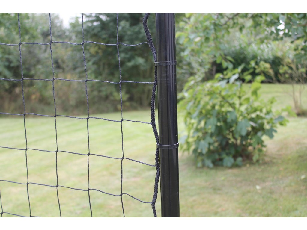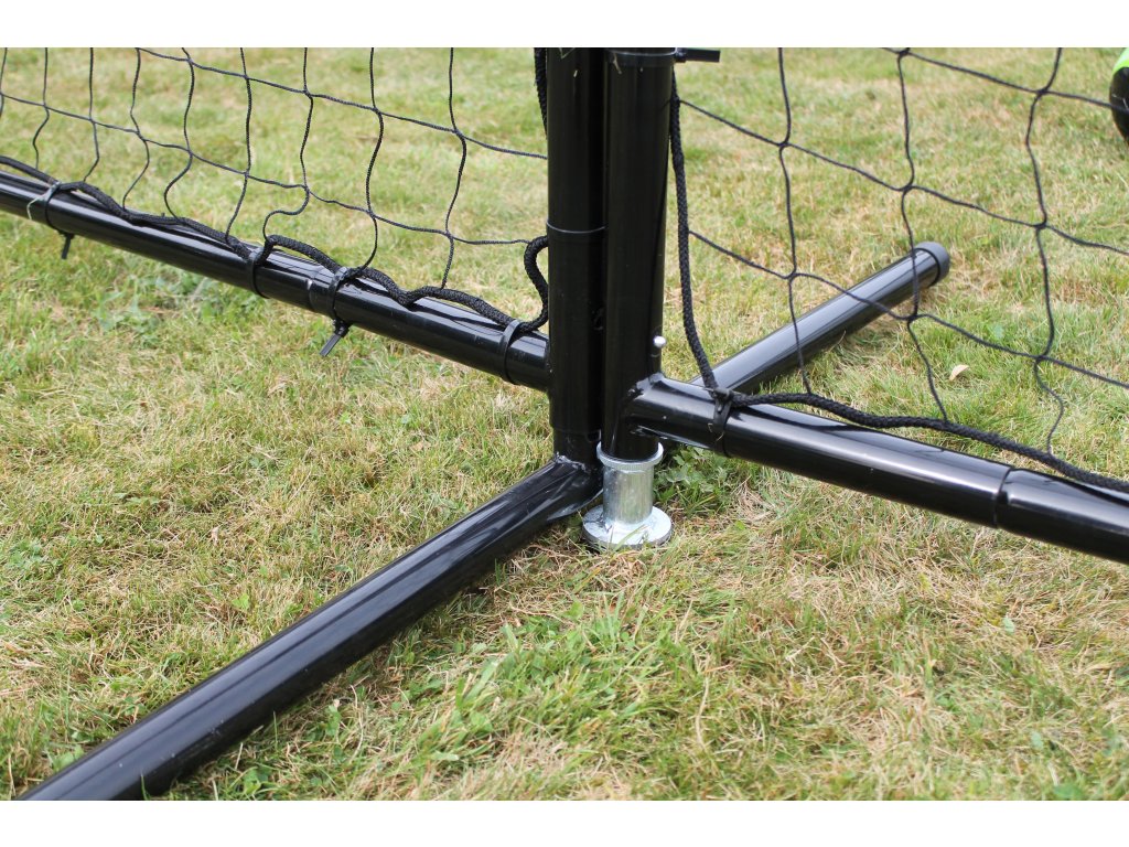 Tato síť se skládá za dvou spojených částí 3 x 3 metry a úhel, který svírají mezi sebou sí můžete nastavit. Tím zajístíte lepší stabilitu, která je navíc zajištěna horizontálními tyčemi ukotvenými po stranách kolíky do země a uprostřed zajišťuje stabilitu kotva do země.