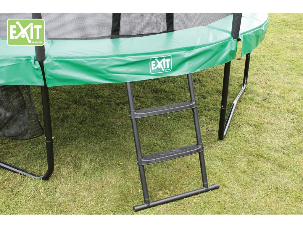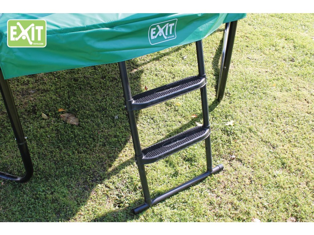 Kovový žebřík s plastovými nášlapy značky Exit, žebřík možno připevnit na trampolíny Exit, ale samozřejmě i na jiné. Žebřík se dělá ve třech velikostech, podle výšky rámu dané trampolíny.