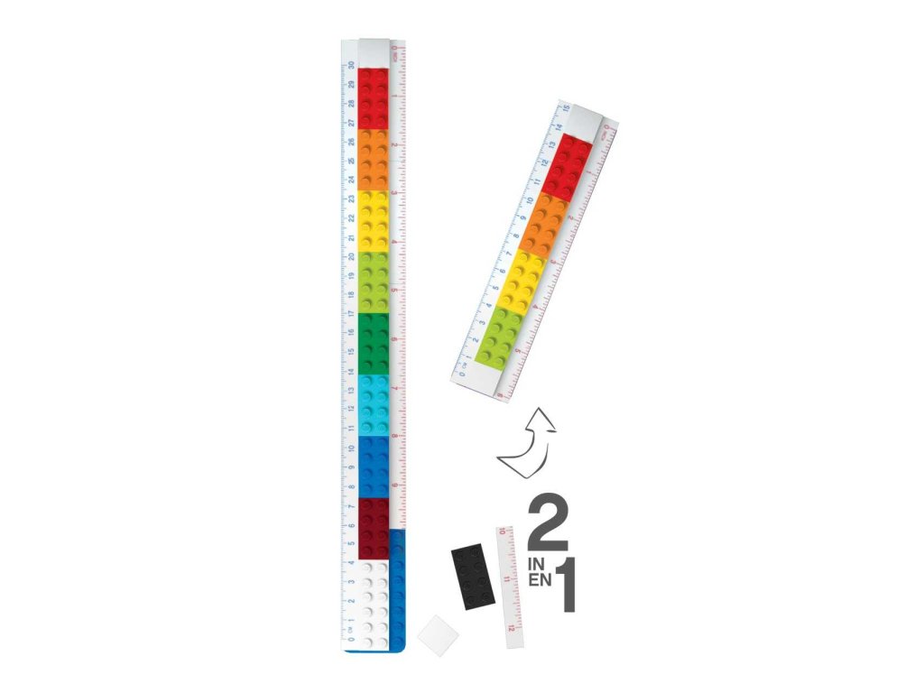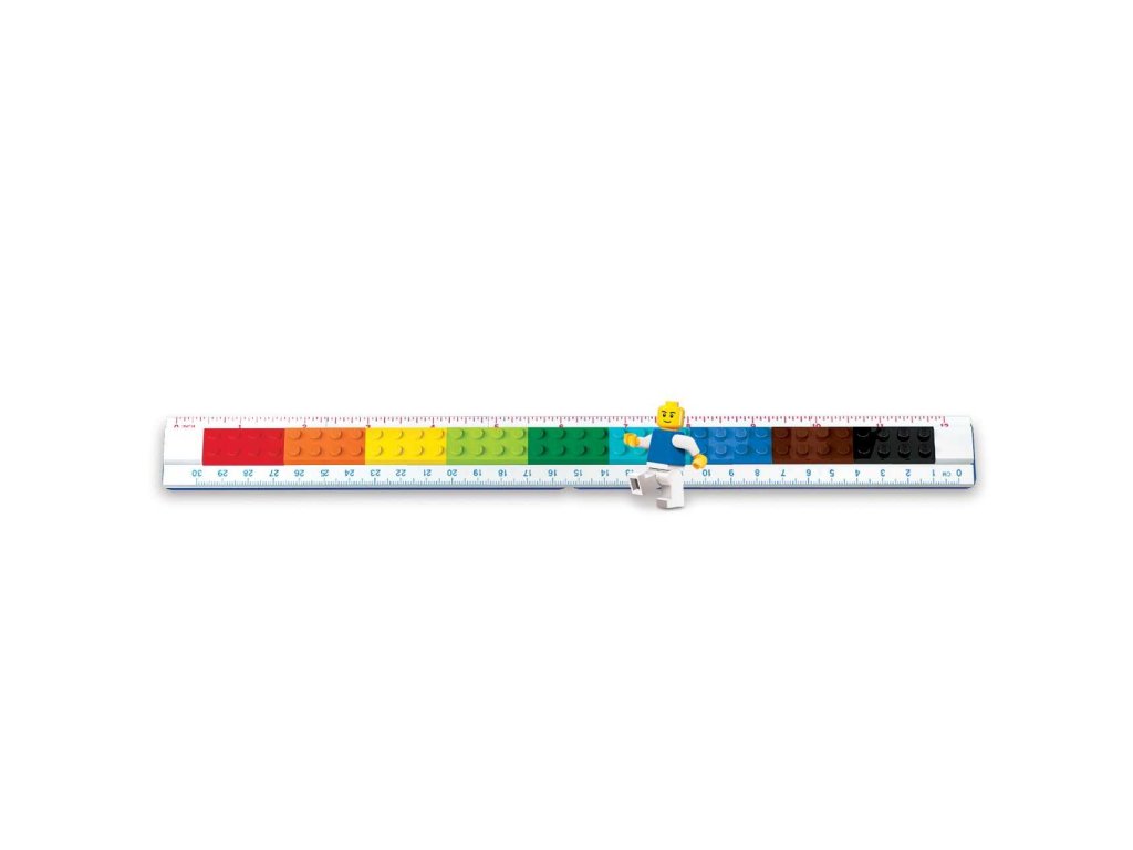Stavebnice LEGO pravítka o délce 30 cm v balení s LEGO minifigurkou. Podle návodu zábavnou formou snadno sestavíte pravítko podle svých potřeb. Balení obsahuje barevné LEGO podložky, pomocí nichž můžete na pravítko přicvaknout tužku, ořezávátko nebo třeba oblíbenou LEGO minifigurku. Pravítko má dvě stupnice - v cm a palcích.