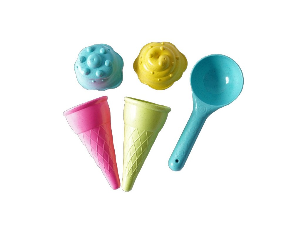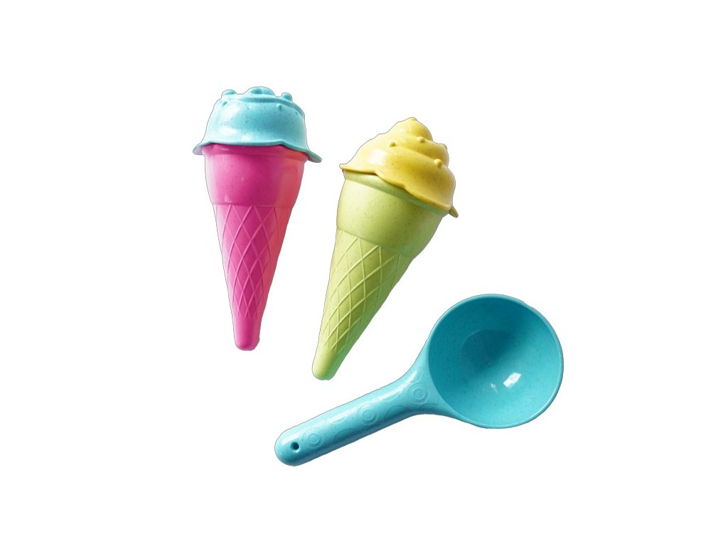 Kornoutek, kopeček, servírovací lžíce… Vytvoř si z písku skvělou zmrzlinu.