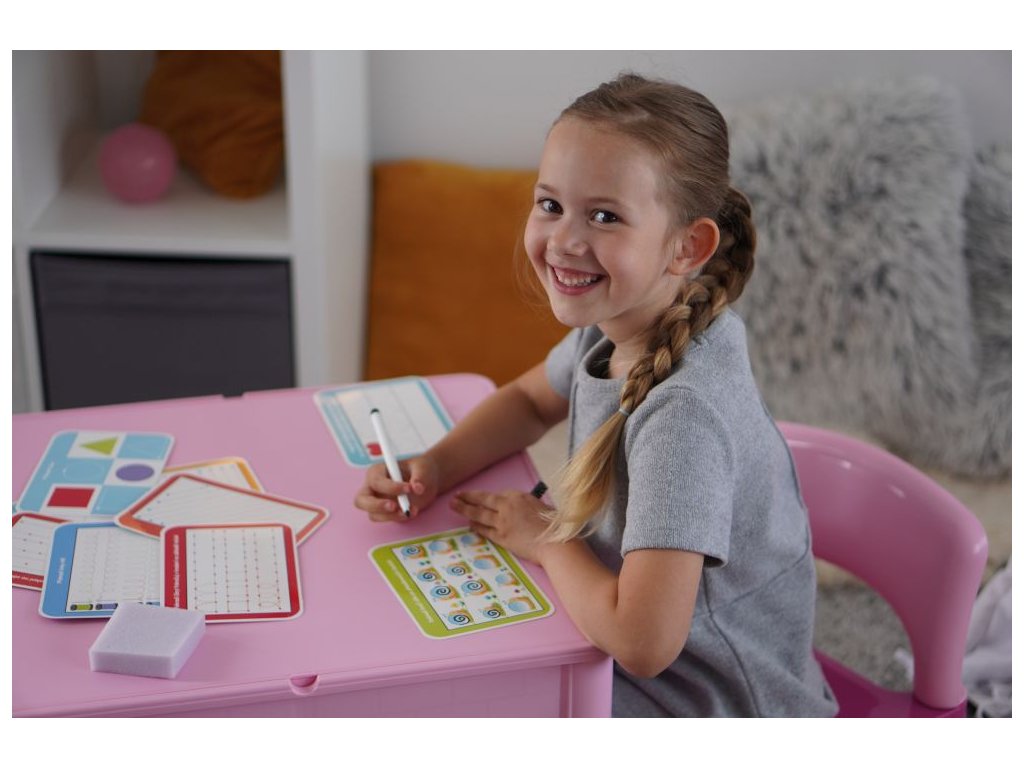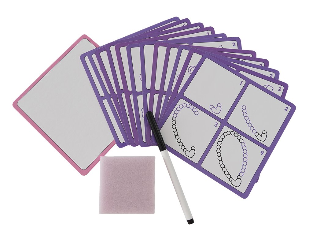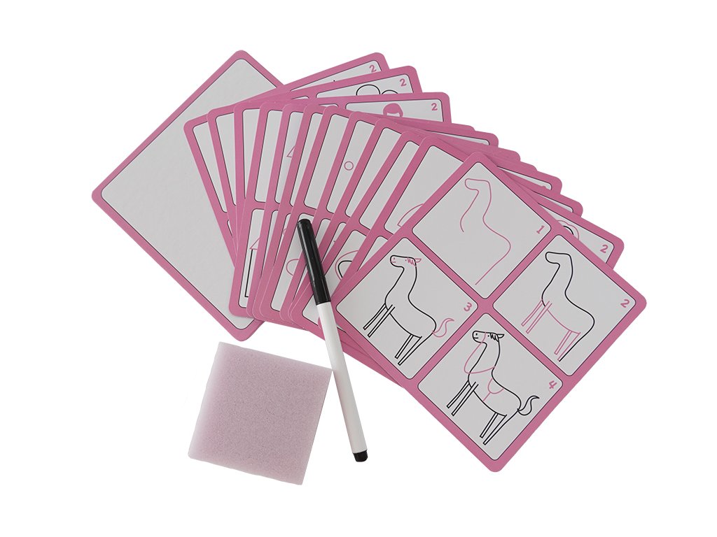 Edukativní sada učím se kreslit krok za krokem trénuje šikovnost a soustředěnost dítěte. Uči děti být pečlivý a trpělivý. Sada obsahuje 12 kartiček s obrázky, speciálni fix, který jde smazat a houbičku. Kartičky jsou opakovatelně použitelné.