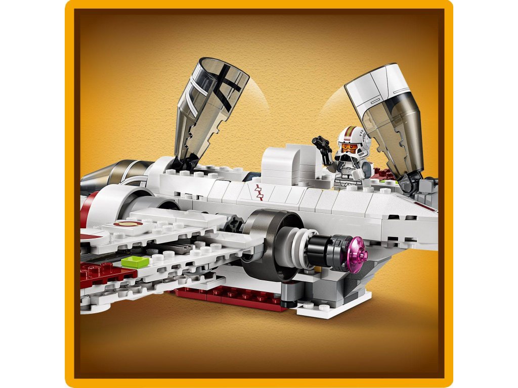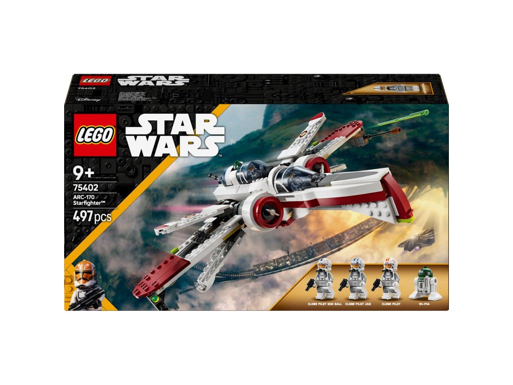 Připomeňte si mise z filmu Star Wars: Pomsta Sithů se stavebnicí ARC-170 Starfighter (75402) pro děti. Model představuje fantastický dárek LEGO® Star Wars™ pro kluky, holky a fanoušky od 9 let. Stíhačka z kostek má 3 otevírací kokpity, 6 křídel, včetně 4 pákou nastavitelných křídel pro útočný a letový režim, a 2 pružinové vystřelovače. Součástí stavebnice vesmírná lodě jsou 4 postavy LEGO Star Wars. Minifigurky LEGO klonovaného pilota Odd Balla, klonovaného pilota Jaga a klonovaného pilota lze umístit do kokpitu. Na palubě je také místo pro figurku LEGO droida R4-P44. S aplikací LEGO Builder si děti užijí porci kreativní zábavy navíc a můžou si v ní přibližovat a otáčet digitální 3D verzi hvězdné lodě Star Wars při stavění. Hvězdnou loď a postavy z této stavebnice lze kombinovat s dalšími sběratelskými sadami LEGO Star Wars (prodávají se samostatně) a rozšířit si tak možnosti fantastického hraní.