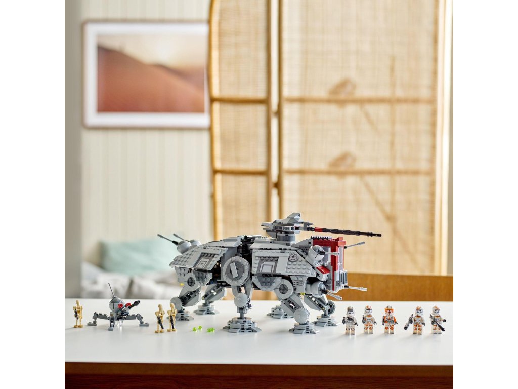 Zažijte znovu bitvu o planetu Utapau s fantastickou stavebnicí LEGO® Star Wars™ AT-TE (75337). Model se pyšní pohyblivýma nohama, těžkým dělem se dvěma vystřelovači, kterým lze otáčet o 360 stupňů, odnímatelným kokpitem pro minifigurku a 2 detailními kabinami s místem až pro 7 minifigurek LEGO. Každou z kabin je možné otevřít, takže se snadno dostanete dovnitř, a hraní s AT-TE usnadní i praktické madlo. Jedná se o skvělý nápad na dárek pro fanoušky filmu Star Wars: Pomsta Sithů od 9 let.