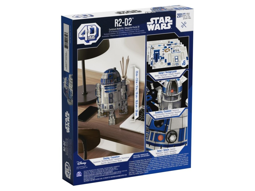 Pro fanoušky Star Wars - tato 4D figurka R2-D2 si přímo říká o vystavení na vaší poličce! Vydejte se na dobrodružnou výpravu s tímto modelem ze světa Hvězdných válek. Tato sada 4D Build obsahuje všechny detaily ve filmové kvalitě, které znáte z filmů, a k tomu ještě lepidlo a stojan! Získáte 6 desek s 201 vyjmutelnými dílky a snadný návod na sestavení. Není potřeba žádné nářadí! Rozměry R2-D2 jsou 19 x 18,6 x 28 cm. Skvěle se hodí jako dekorace do ložnice, herny nebo jako ozdoba narozeninového večírku s tematikou Star Wars - hrdě si R2-D2 vystavte. Pro nové mladé fanoušky Star Wars - toto puzzle je perfektním dárkem pro každého dospívajícího superfanouška. A pro dospělé fanoušky původních figurek ze světa Star Wars také představuje perfektní hračku. Ať už milujete světelné meče, Mandaloriana, Baby Yodu nebo Bobu Fetta, tato 4D figurka R2-D2 je přímo pro vás. Podívejte se na další modely ze světa Star Wars určené pro dospívající od 14 let. Puzzle 4D Build je také fantastickým dárkem k narozeninám pro muže a dárkem pro něj! Vytáhněte světelný meč a helmu Star Wars, abyste si užili akční zábavu, a začněte stavět!