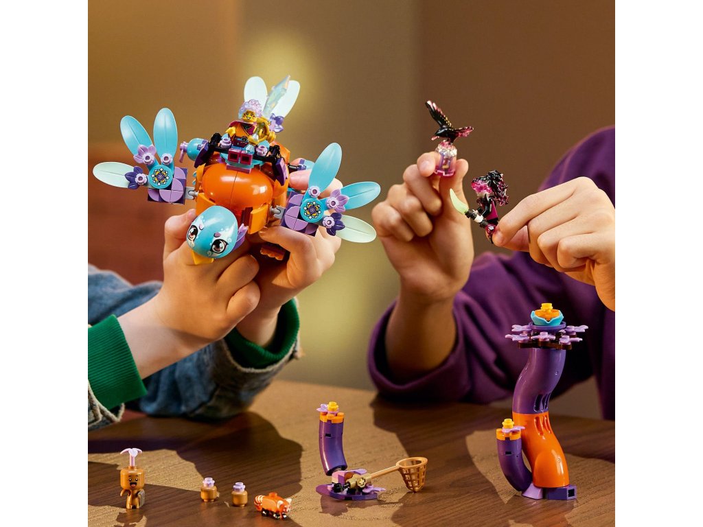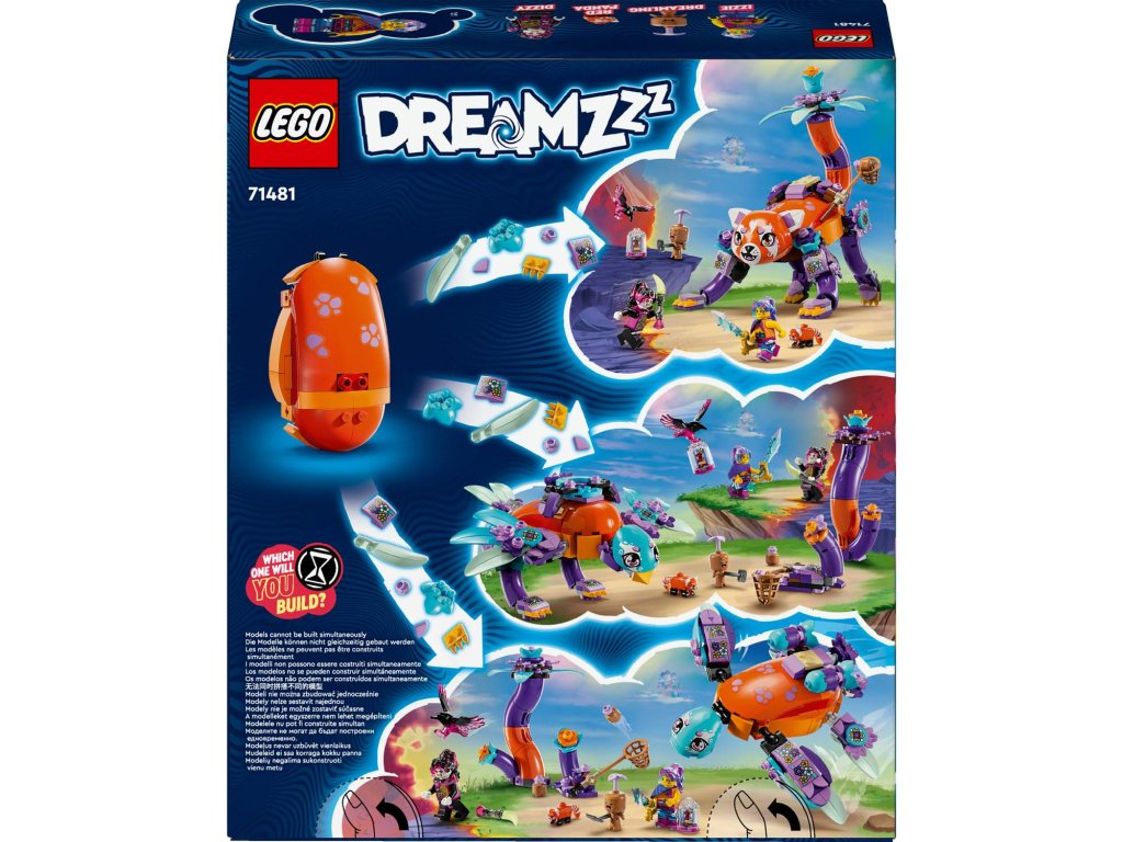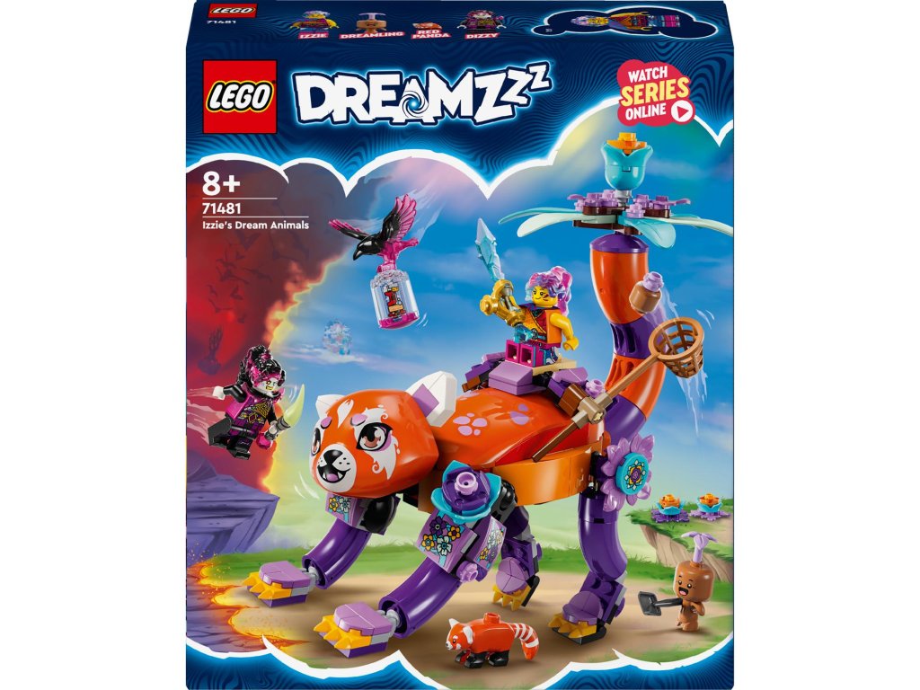 Popusťte uzdu fantazii se stavebnicí LEGO® DREAMZzz™ (71481) Izzie a její snová zvířátka pro děti od 8 let. Tato stavebnice se zvířaty je inspirovaná napínavým televizním seriálem a holky a kluci v ní objeví kouzelné vajíčko, ve kterém se skrývajípřestavitelné figurky snových stvoření. Krkavec Nikdyčarodějnice ukradl Izzieinu vzpomínku! Kreativní děti ji mohou získat zpět s pomocí této fantasy stavebnice, která malým snílkům přináší hned 3 úžasné možnosti stavění: Mohou vejce přestavět na kouze lnou pandu červenou a poté ji přeskládat na fantastického ptáčka nebo na mořskou želvu. Panda červená může krkavce pronásledovat na souši, fantastický pták může krkavce sledovat na obloze a bájná želva může krkavce nahánět pod vodou. Tuto stavebnici LEGO DREAMZzz přivádějí k životu 2 minifigurky: Hrdinka Izzie a její zlá dvojnice Dizzy. Součástí je také figurka stvoření ze Světa snů a mini figurka pandy červené. Nechybí návod na stavění vedený příběhem, který dětem umožní ponořit se do akce a užít si neomezené kreativní hraní. Rozměry – Stavebnice se skládá z 328 dílků a model pandy červené měří přes 19 cm na výšku