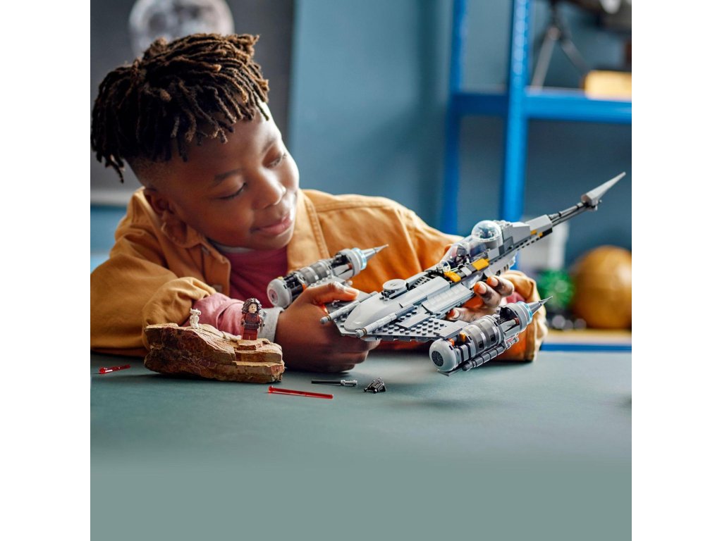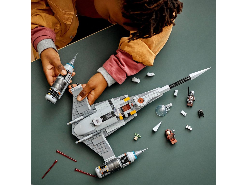 Příběhy na planetě Tatooine ze seriálu Star Wars: The Book of Boba Fett ožijí malým stavitelům pod rukama díky modelu LEGO® Mandalorianova stíhačky N-1 (75325). Nabízí kokpit pro minifigurku, prostor pro Grogua, nákladní prostor, pružinový vystřelovač a realistické detaily. Zábavný dárek pro děti od 9 let. Tato stavebnice nabízí minifigurky LEGO Mandaloriana a Peli Motto, a k tomu navíc figurky LEGO Grogua (kterému se láskyplně přezdívá „Dítě“) a droida BD pro kreativní hraní.