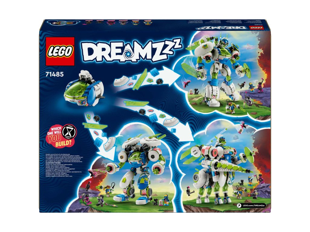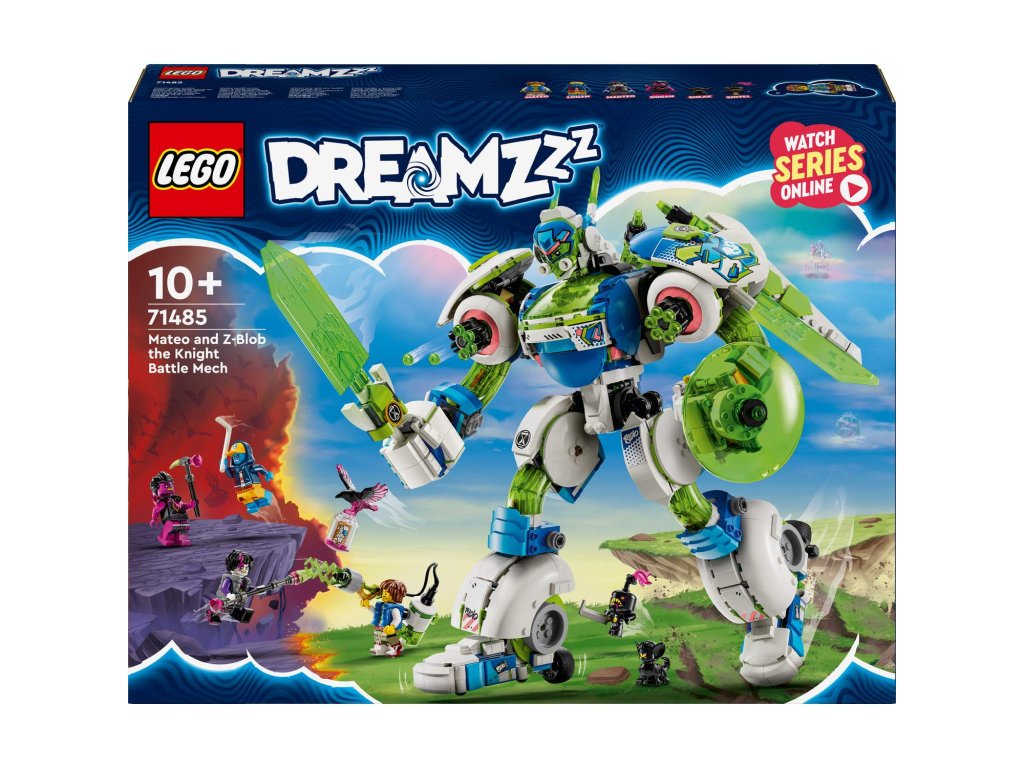 Nastartujte dětskou představivost se stavebnicí LEGO® DREAMZzz™ (71485) Mateo a rytířský bojový robot Z-Flek. Tato přestavitelná stavebnice je inspirovaná napínavým televizním seriálem a děti od 10 let si s ní postaví hned tři varianty robota z kostek LEGO! Malí snílci si užijí spoustu zábavy při stavění raketoplánu Z-Fleka, který pak přestaví na pouličního rytířského robota, pouličního rytířského kentaura nebo pouličního bojového robota. Všechny modely mají otevírací kokpit, křídla a posilovače a řadu úchvatných doplňků včetně meče, štítu, kopí a dvou 6násobných vystřelovačů. S figurkou krkavce a sběratelskou nádobou na sny si děti užijí ještě větší porcí zábavy. Stavebnici vdechují život 4 minifigurky LEGO DREAMZzz: Hrdinové Mateo a Logan a jejich temní dvojníci MadTea a Dogan. Nechybí ani figurky zlých přisluhovačů Sneaka a Snivela. Stavebnice robota podněcuje nápadité hraní a součástí je návod na stavění vedený příběhem, se kterým se děti pustí do dobrodružství a stanou se hrdiny Světa snů. Rozměry – Stavebnice se skládá z 1 333 dílků a figurka bojového robota měří přes 35 cm na výšku