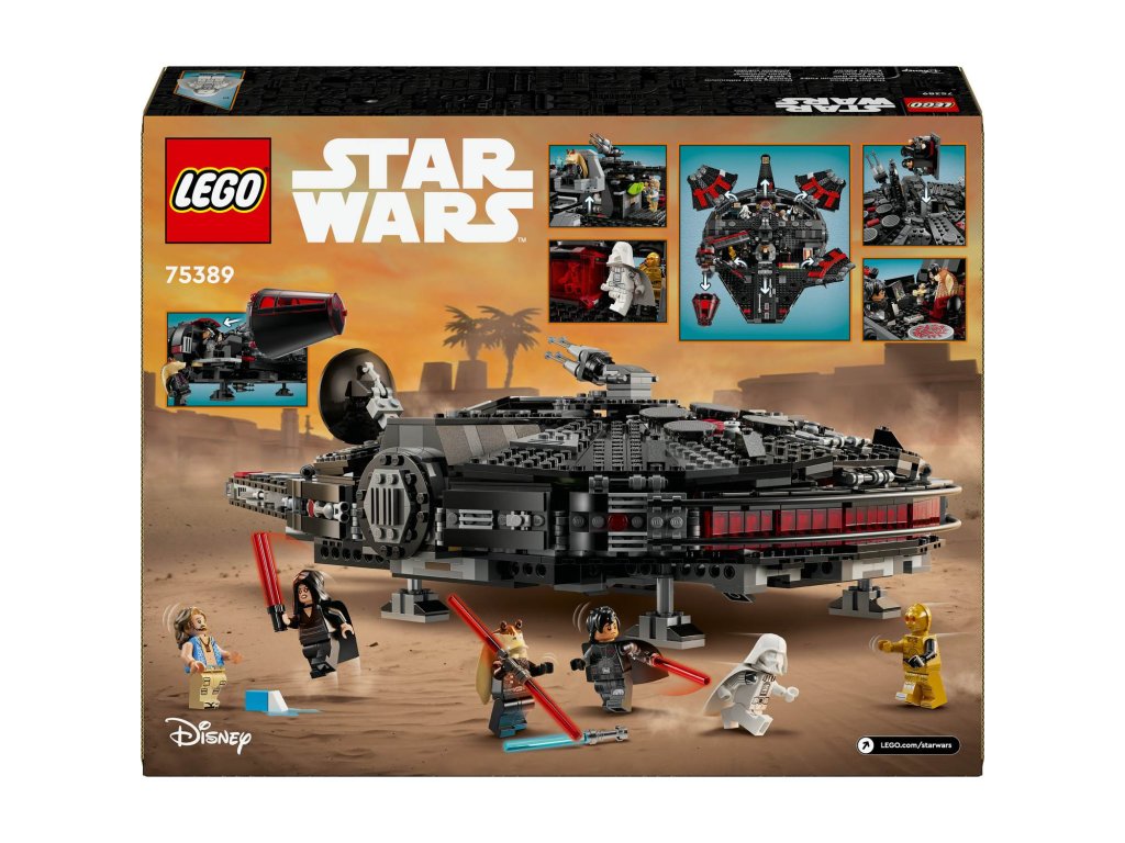 Obraťte svět LEGO® Star Wars™ vzhůru nohama se stavebnicí Temný Falcon (75389) pro děti, která obsahuje temnou verzi lodi Millennium Falcon ze speciálu LEGO Star Wars: Rebuild the Galaxy od Disney+. Tato stavebnice vesmírné lodi z kostek od LEGO Star Wars představuje úžasný narozeninový dárek pro kluky, holky a fanoušky od 10 let, má výklopné panely pro snadný přístup k propracovanému interiéru, ve kterém najdete trůn Darth Jar Jara, velitelské středisko, hyperpohon, zábavní prostor a vězeňskou celu. Díky pružinovým vystřelovačům, otočným dělům a odnímatelnému střeleckému stanovišti stavebnice přináší ještě více možností akčního hraní. Součástí této stavebnice vesmírné lodi je také 6 minifigurek LEGO Star Wars, jak jste je ještě neviděli, včetně Darth Jar Jara, Luka na pláži a Jedie Vadera. Tato stavebnice se skvěle hodí ke stavebnicím Stíhačka Jedie Boba (75388) a Stíhačka TIE a X-wing – kombinovaná stavebnice (75393) (prodávají se samostatně), které obsahují také vozidla a postavy ze speciálu LEGO Star Wars: Rebuild The Galaxy.