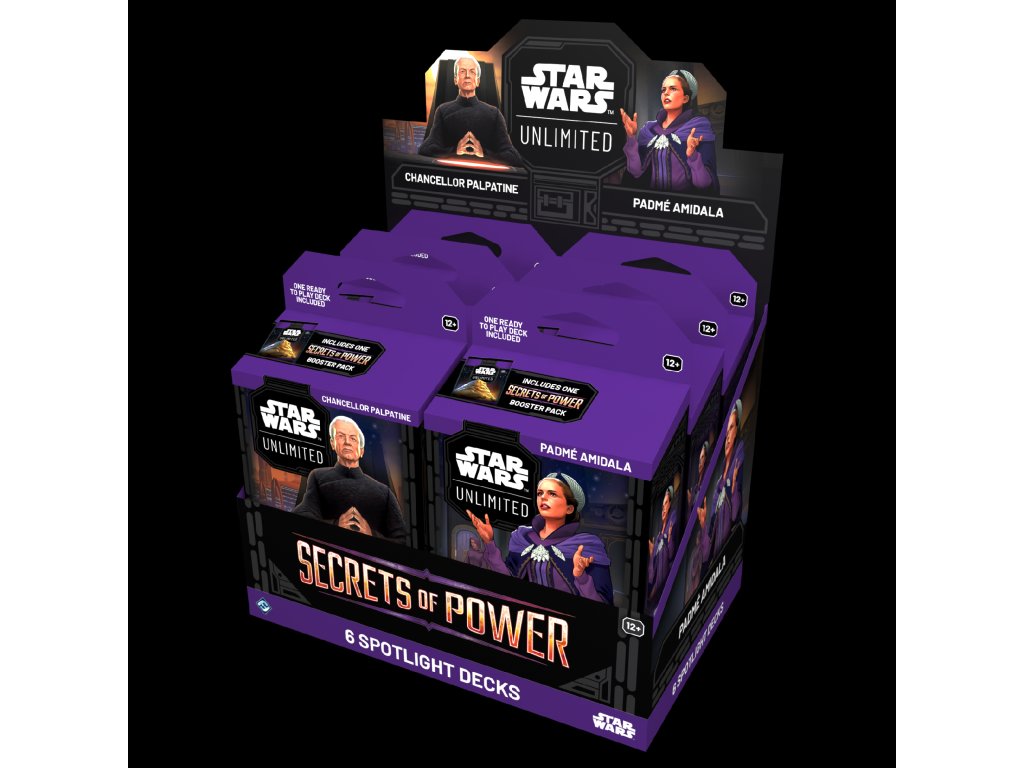 Vstupte do galaxie nekonečných možností ve hře Star Wars: Unlimited! V této rychlé a snadno pochopitelné sběratelské karetní hře si změříte síly s protihráčem v napínavých soubojích plných ikonických postav ze světa Star Wars. V ten pravý okamžik odhalte, co máte v ruce s Padmé Amidalou, anebo kujte pikle ve stínech a plánujte své konečné vítězství s kancléřem Palpatinem v tomto Spotlight Decku! Tento předpřipravený balíček s 50 kartami obsahuje vše, co potřebujete ke vstupu do šesté sady Secrets of Power.