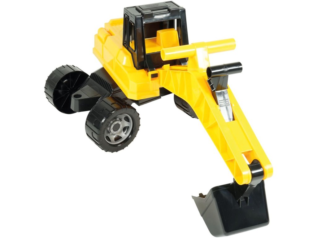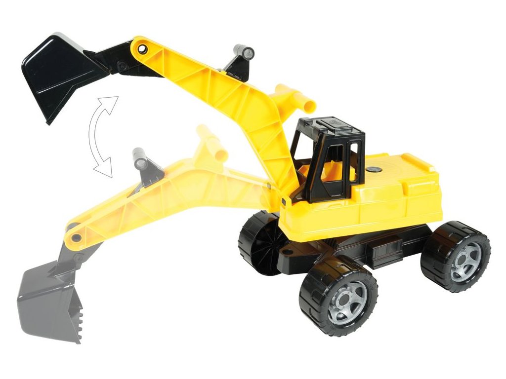 Plně funkční barevný bagr. Baleno v okrasném kartónu. Velikost 64x27x32cm. Vyrobeno v ČR.