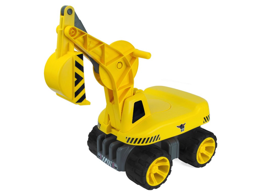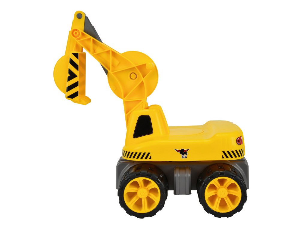 Velký bagr z kvalitního, robustního plastu, otočný o 360 stupňů. Pohyblivá lžíce jako u opravdového bagru. Pneumatiky z materiálu, který nezanechává stopy na podlaze - vhodný na všechny typy podlah. Délka při natažení lžíce 74/82 cm.
