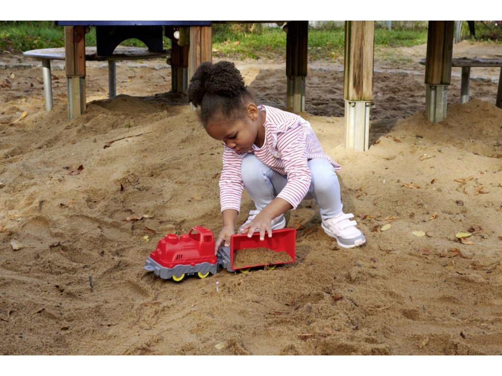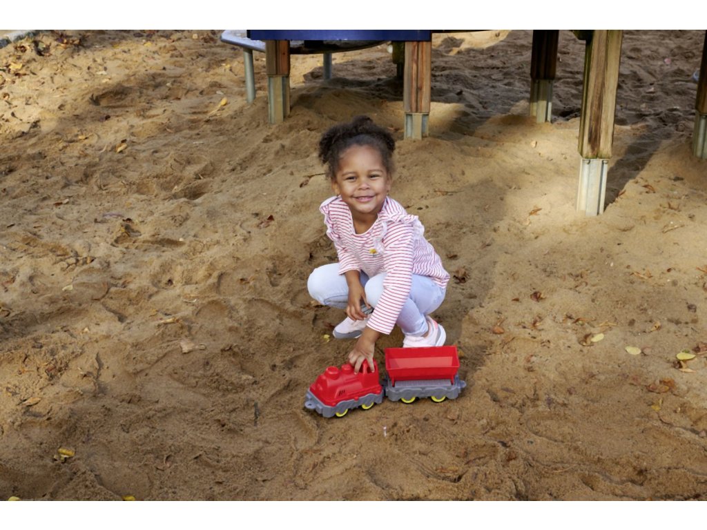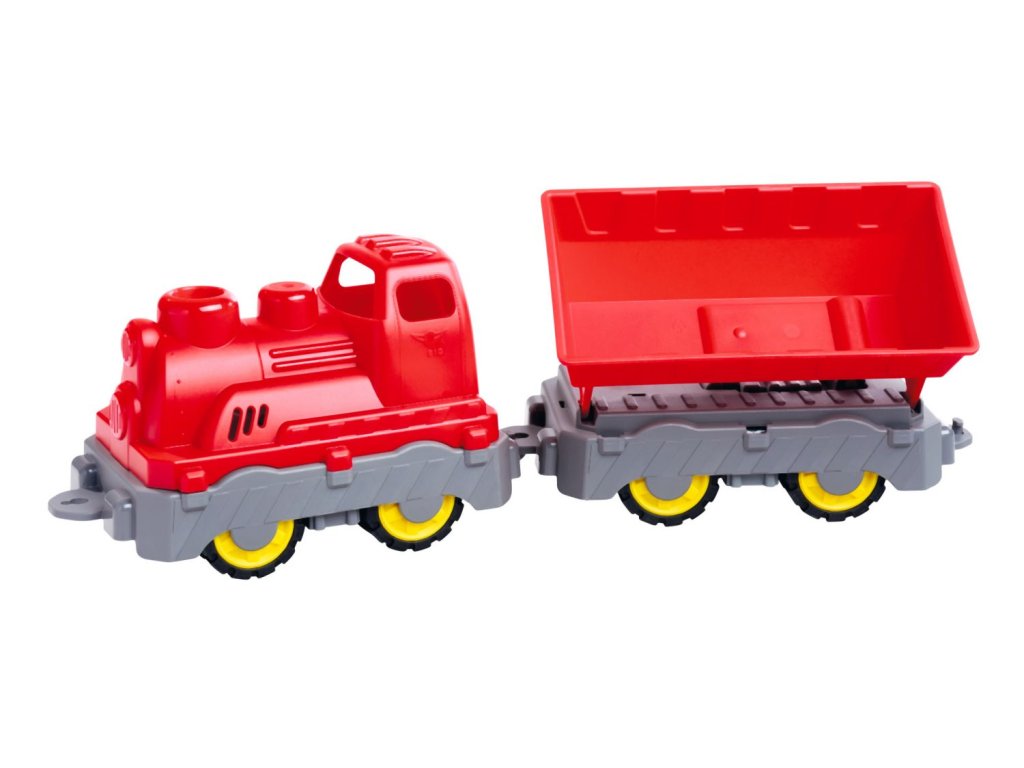 BIG Power Worker Mini vláček, se svou lokomotivou a sklápěcím vagónem, je skvělým pomocníkem pro zbývající vozidla BIG Power Worker, která jsou na stavbě vytížená. Vagón lze kdykoliv odpojit a zpátky připevnit k lokomotivně, má také výklopnou ložnou plochu. Kola jsou vyrobena z měkkého materiálu. Snadné použití pro malé dětské ručičky, snadné čištění. Vyrobeno v Německu.