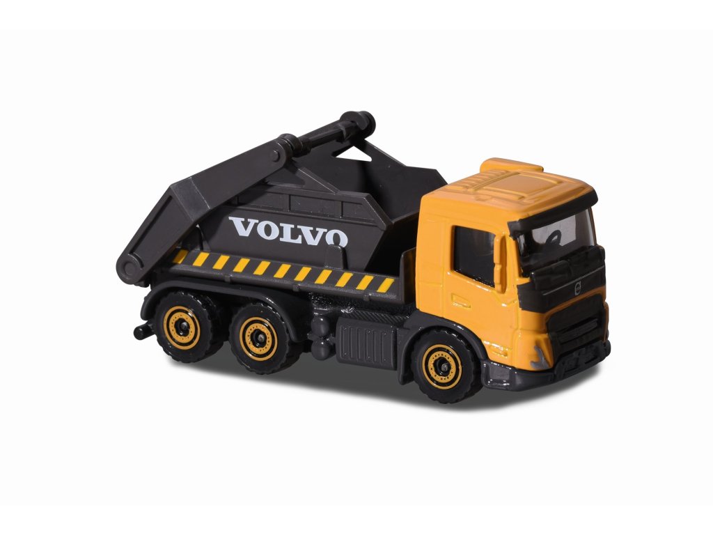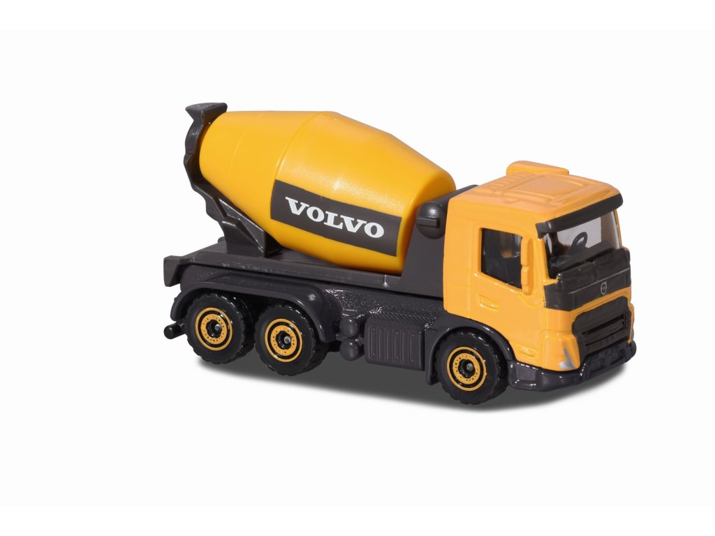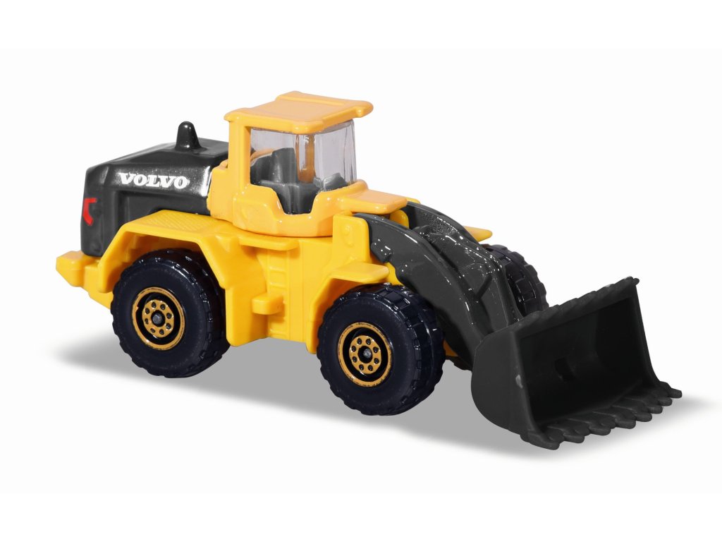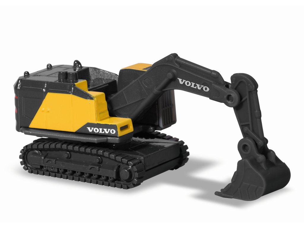 Volvo Edice kovových pracovních a stavebních aut na volnoběh, s pohyblivými částmi, 6 druhů (pásové rýpadlo, kolový nakladač, dampr, tahač s korbou, míchačka a sklápěčka). Délka autíčka 7,5 cm.