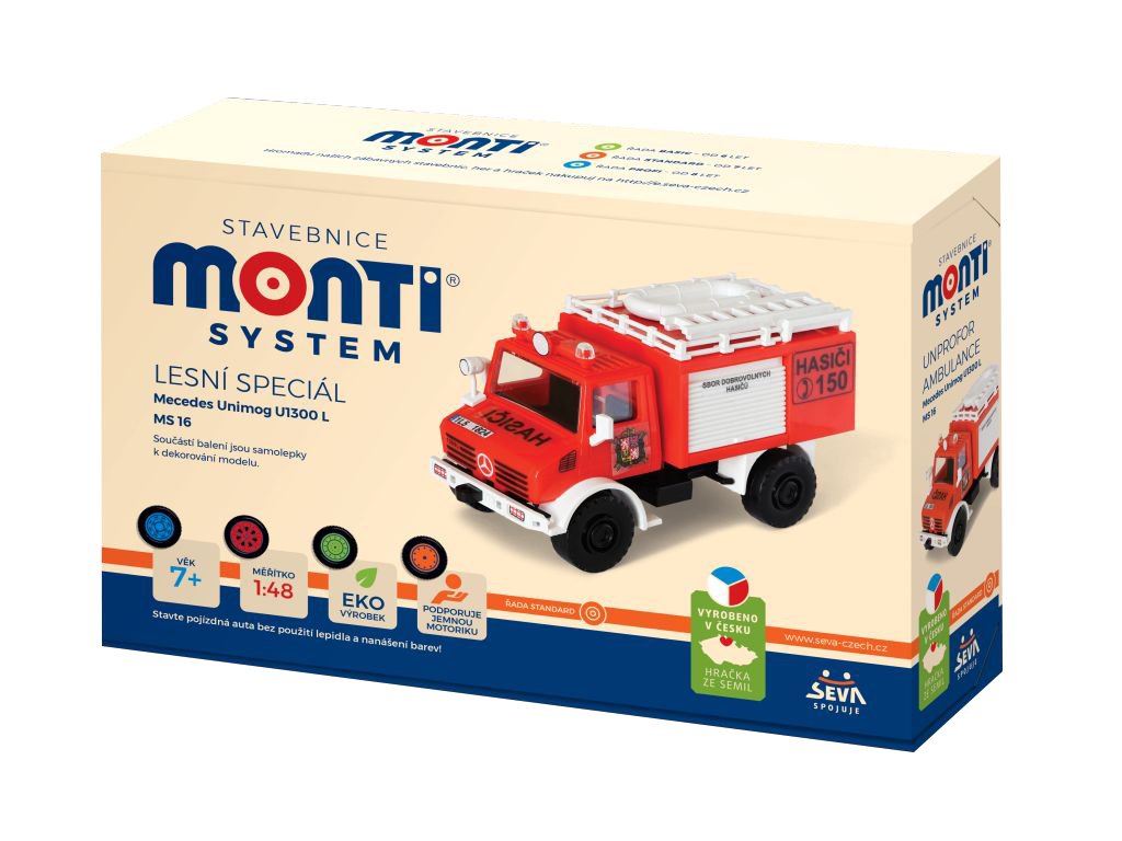 Model Mercedes Unimog MS 16 Lesní speciál v měřítku 1:48. Stavebnice patří do skupiny Standard.