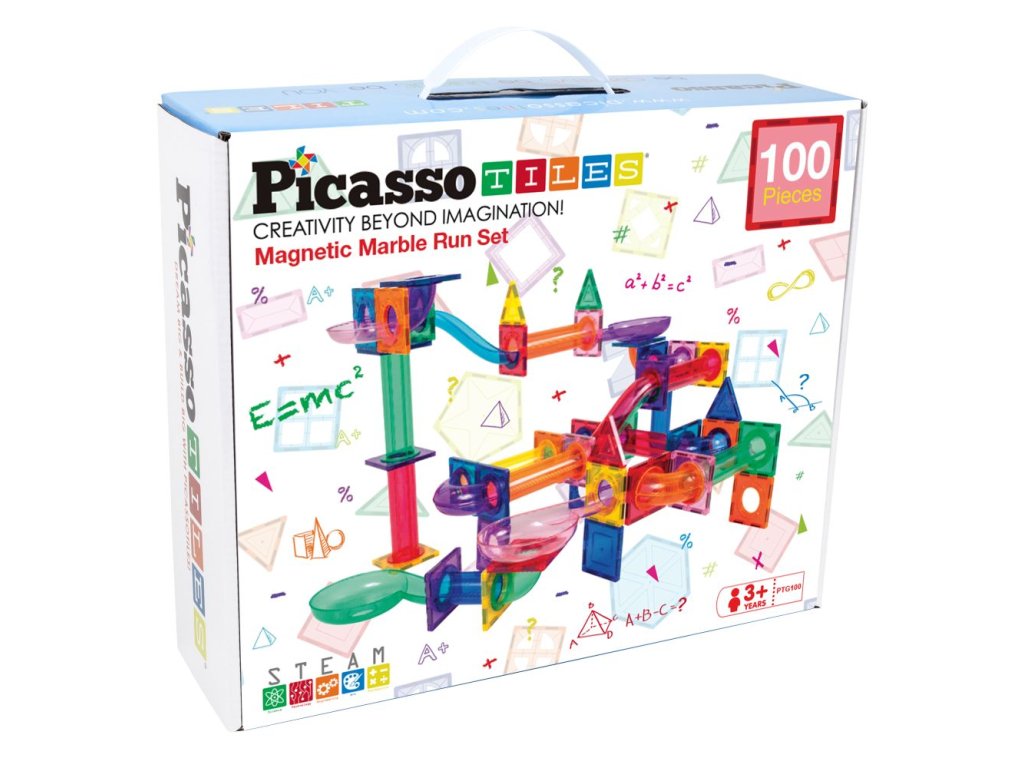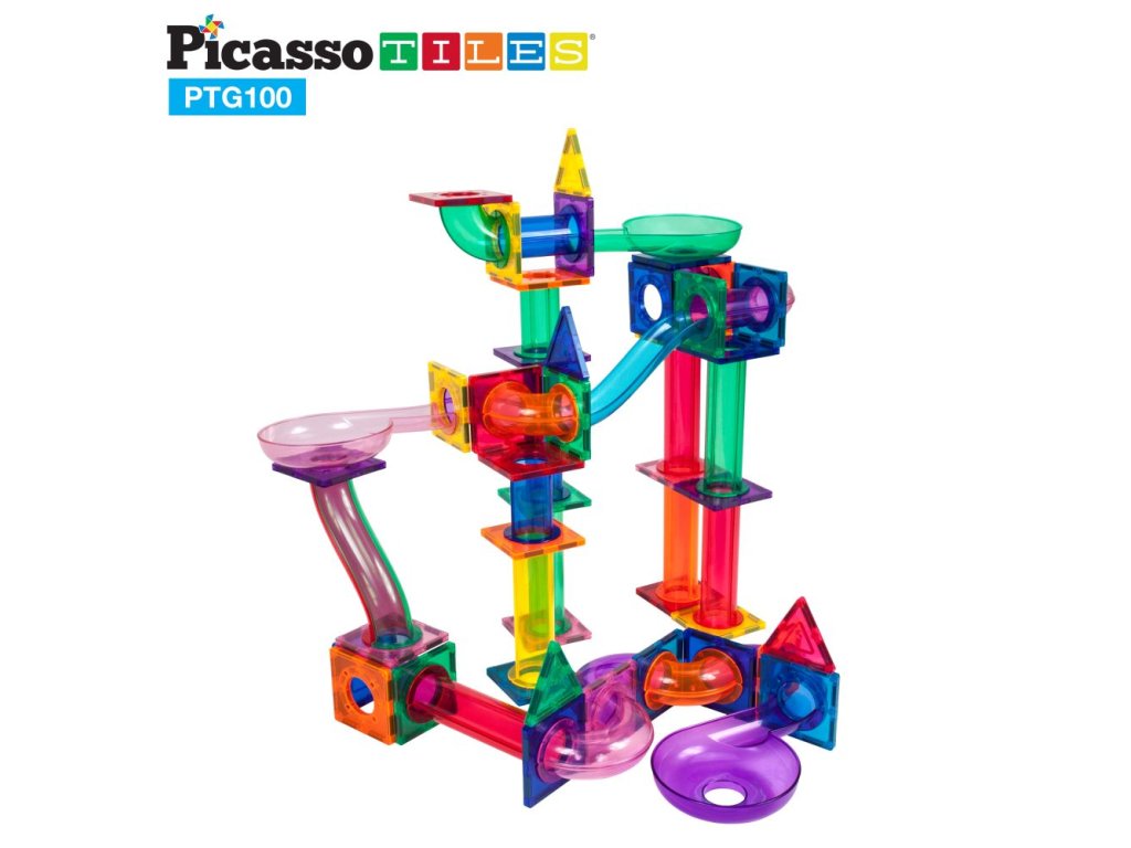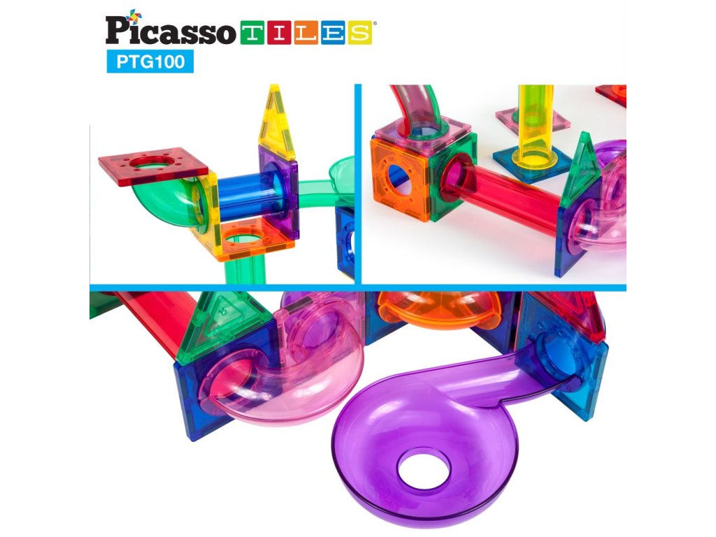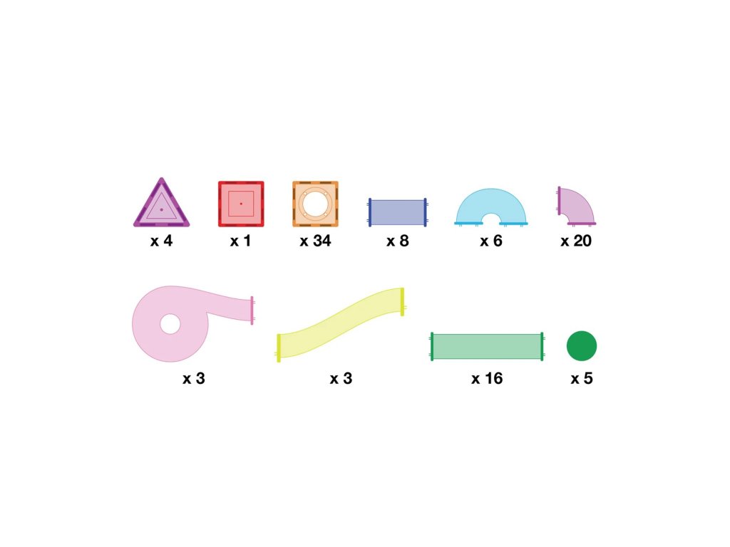 Obsahuje barevné průhledné magnetické dlaždice, rampy a trubice.Umožňuje stavbu 3D kuličkových drah. Děti mohou vytvářet vlastní závodní tratě a sledovat, jak kuličky projíždějí zatáčkami a pády. Učení skrze hru zahrnuje pohyb, gravitaci a princip příčina–následek (STEM dovednosti).
