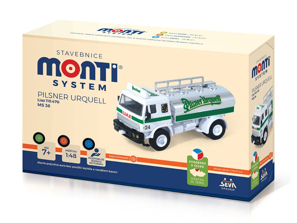 Model Liaz MS 36 cisterna Pilsner Urquell v měřítku 1:48. Stavebnice patří do řady modelů Standard.
