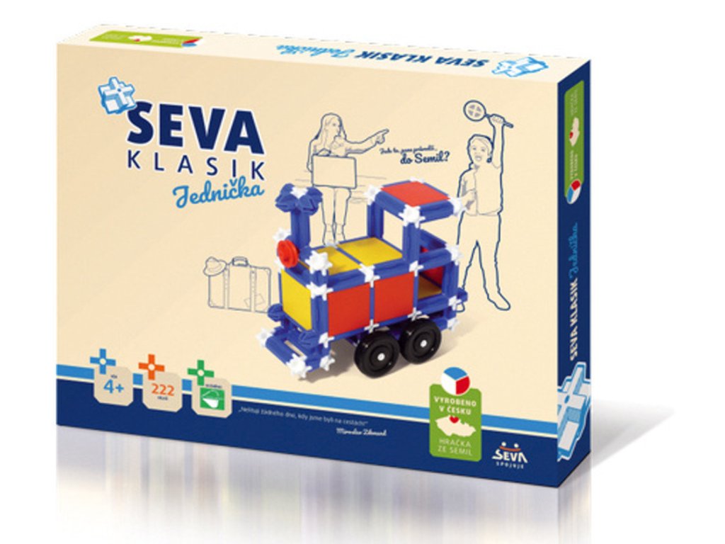 SEVA 1 je nejmenší ze základní řady Seva. Ze této stavebnice lze postavit jednoduché stavby - domeček, nákladní auto, letadlo, nábytek a další. Obsahuje i 4 kolečka pro vozidla.