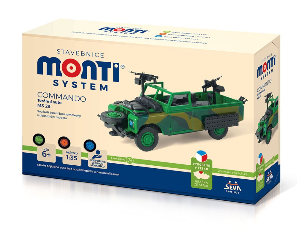 Monti System je legendární česká stavebnice věrných modelů osobních a nákladních aut, s kterými si vyhrají malí i velcí. Modely jsou vyráběny v měřítku 1:48, 1:35 a 1:28.Monti System sestavíte bez lepidla a nanášení barev!