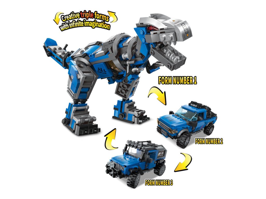 Síla spojení vědy a technologie, to je mechanický tyranosaurus. Z této stavebnice můžete kromě T-Rexe postavit 2 rozdílná autíčka. Vyrobeno z netoxického ABS plastu, v balení 375 dílků.
