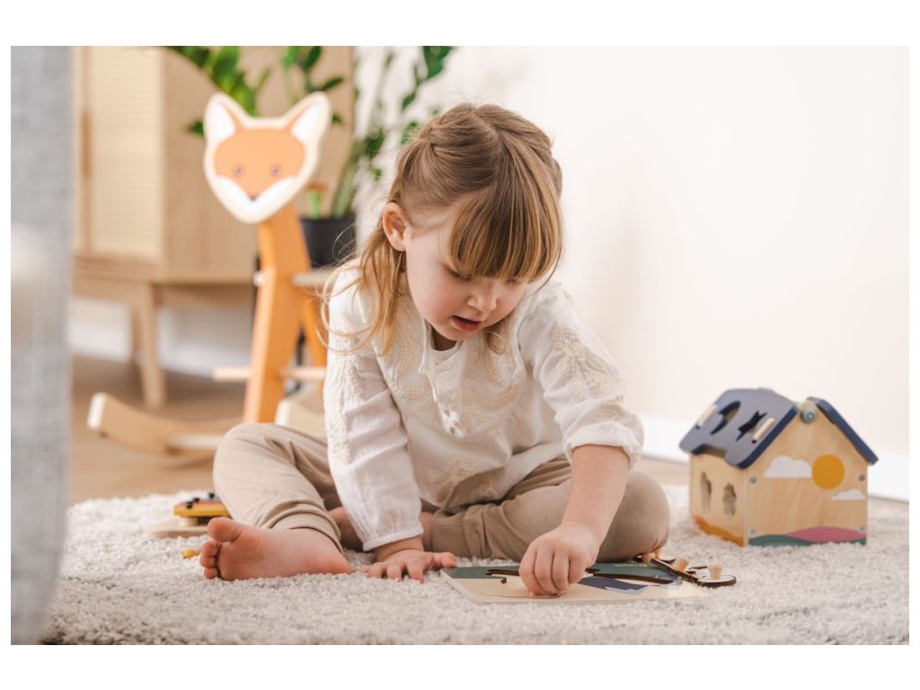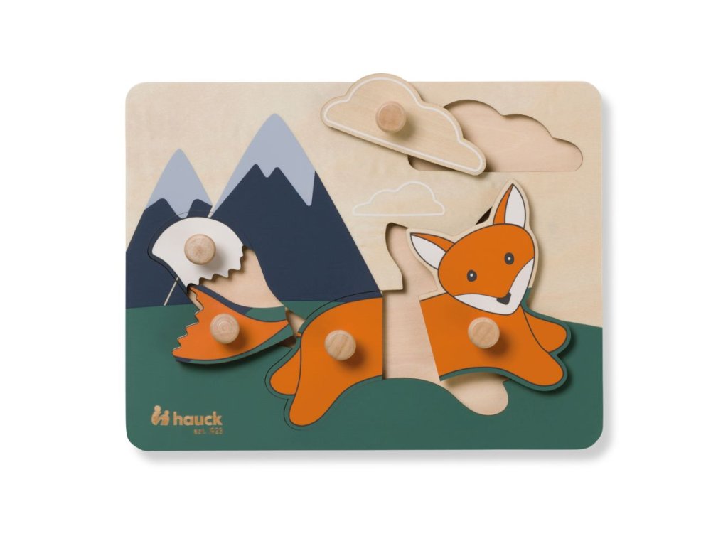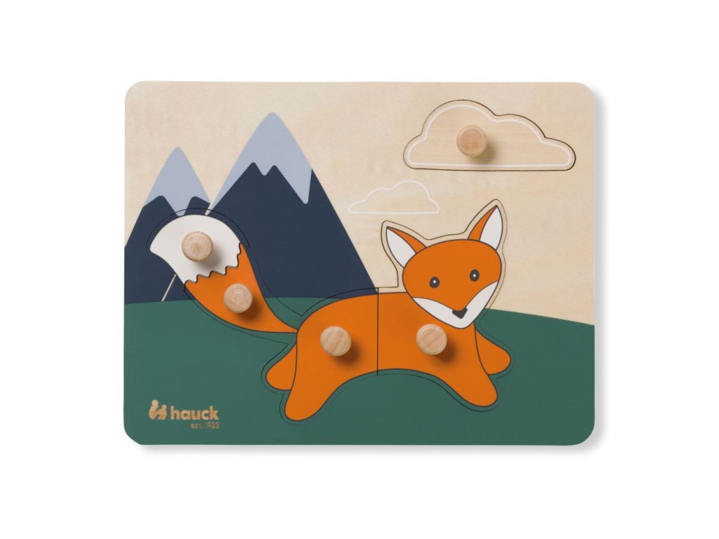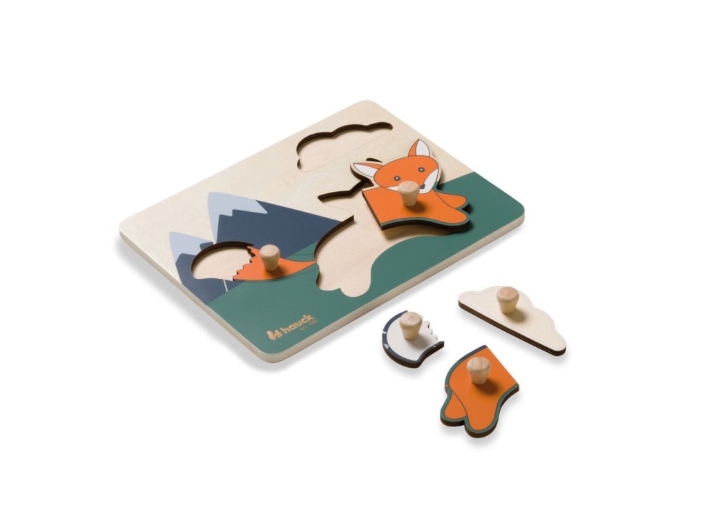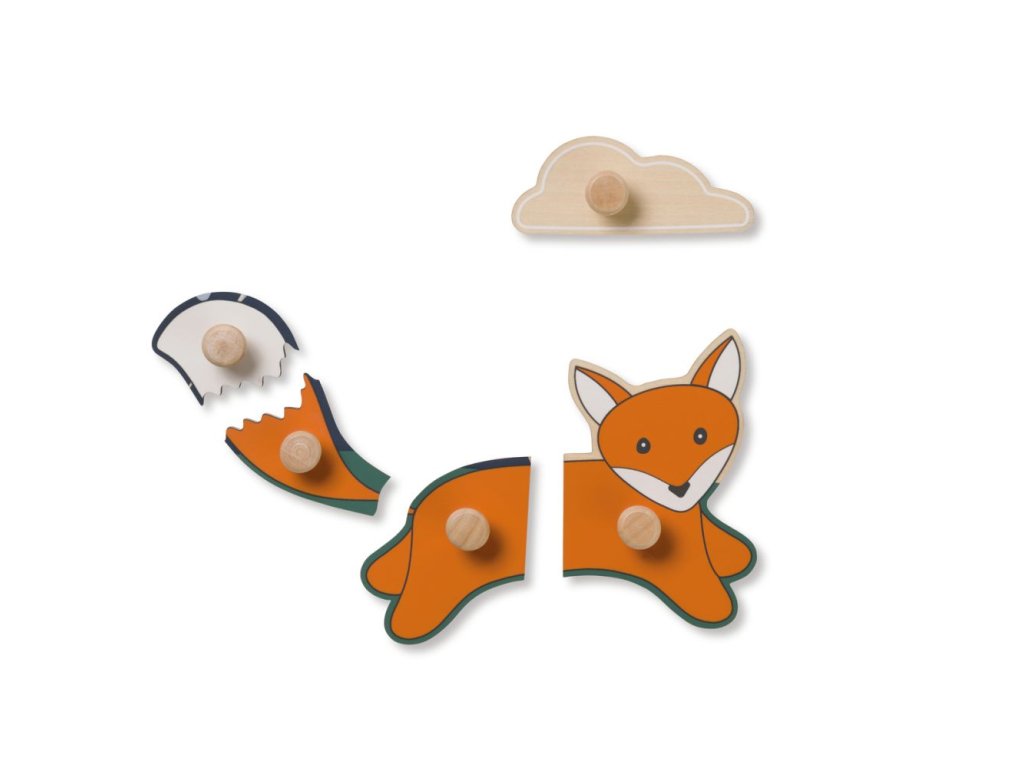 Dřevěná skládačka podporuje jemnou motoriku a hravé učení koordinace ruka-oko. S láskou navržené puzzle se skládá z dřevěné desky a s tvary na dílky skládačky v podobě zvířátek. Díky praktickým knoflíkům vaše dítě snadno uchopí každý kousek. Uchopením a přilepením dílků na místo vaše dítě vytvoří zvířátko a zároveň trénuje tvary, paměť, jemnou motoriku, koordinaci oko-ruka a koncentraci. Udržitelná hračka je vyrobená ze dřeva s certifikací FSC®. Vhodné pro děti od 1 roka.