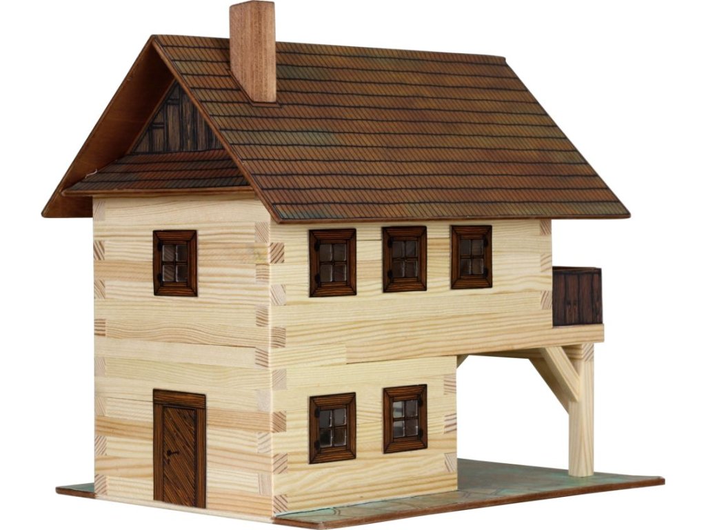 Drevená stavebnica na lepenie Walachia - Vodný mlyn. Stavebnice na lepenie Walachia sú drevené modely domčekov a stavieb z Valašského kraja v mierke 1:32. Základom sú drevené hranolčeky 9x9 mm a k tomu sú v súprave vždy všetky papierové doplnky - okná, dvere, strešné časti atď. Na lepenie sa používa lepidlo Herkules, nie je však súčasťou stavebnice. Priložený je montážny návod a malé kapitoly z histórie ľudovej architektúry. Nižšie je označenie náročnosti číslom 1 - 5, pričom 1 je najľahšia. Rozmery: 24 x 18 x 22 cm. Počet dielov stavebnice: 196, Náročnosť: 5.