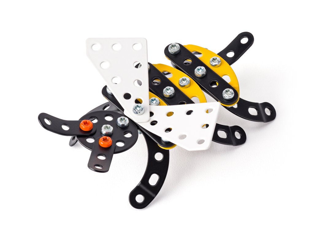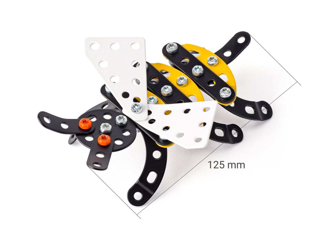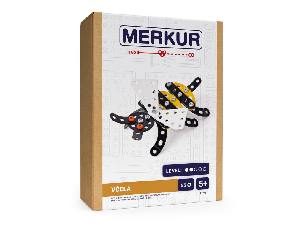 Kovový model Včely z kolekce hmyzáků obsahuje součástky nutné pro sestavení včely. V balení najdete podrobný návod, Merkur sadu nářadí a unikátní Merkur díly. Merkur díly jsou univerzální a tak vás neomezí v jakékoli modifikaci a nápadu. Stavebnici tak můžete sestavit podle přiloženého návodu nebo čistě podle svých představ. Se sestavenými modely si lze hrát, jsou velmi odolné. Podporuje a rozvíjí manuálních schopnosti, logické myšlení, soustředění. Rozměr balení: 18x13,5x5cm cm.Rozměr výrobku: 12,5x6,5x4,5cm cm.Počet dílků: 55. Nevhodné pro děti do tří let. Doporučený věk: 5+