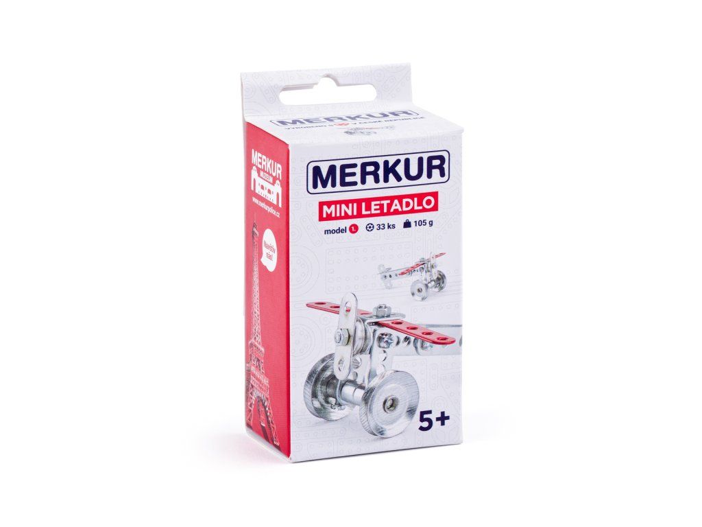 Startovací mini stavebnice Merku , z které je možné sestavit 1 model-letadlo. Ideální pro trénink jemné motoriky a představivost. Vhodné i pro děti, které s Merkurem začínají, ale také pro sběratele. Se sestavenými modely si lze hrát, jsou velmi odolné. Stavebnice obsahuje 33 dílků.|Rozměr balení:5x9,5x4,5 cm | Rozměr modelu: 8,5x5x9,5 cm.Věk: 5+| Nevhodné pro děti mladší 3 let | Váha: 105 g.