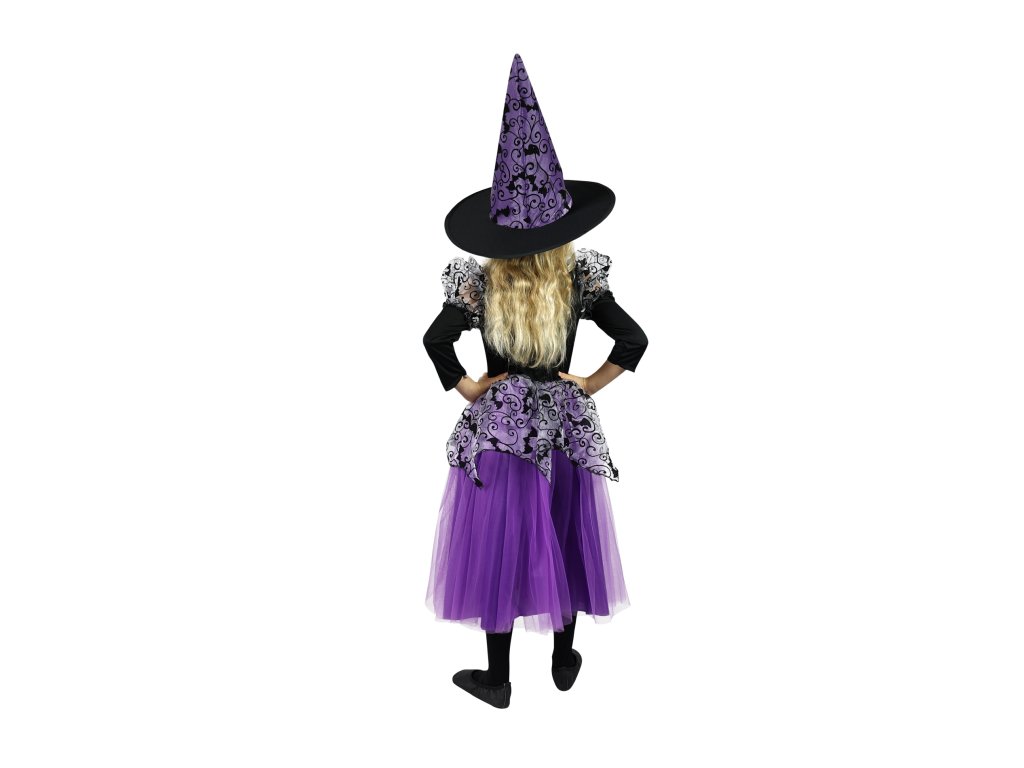 Nádherný kostým na Halloween pro všechny malé čarodějnice! Kostýmek o velikosti M je určen pro holčičky ve věkovém rozmezí 6-8 let (117-128 cm). Fialové šaty s nadýchanou sukní a tříčtvrtečním rukávem jsou zdobeny černým netopýřím vzorem. Součástí balení je také perfektně sladěný, stejně zdobený klobouk. Nejen letos je potřeba myslet EKO-nomicky i EKO-logicky! EKO-balení je vhodné zejména pro e-shopy kde zákazník nakupuje dle fotografie a není třeba velkého balení s věšákem. EKO-logicky – na balení bylo použito méně plastu a dalších materiálů. Jedná se o malý transparentní obal s fotografií. EKO-nomicky –EKO-obal zabere jen polovinu místa – šetřete skladová místa s námi!