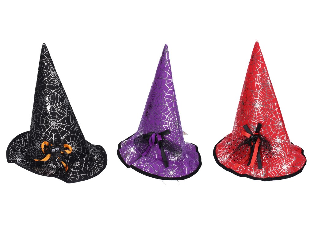 Černý klobouk s pavoukem a stříbrnými pavučinami bude skvělým doplňkem pro všechny malé čaroděje!