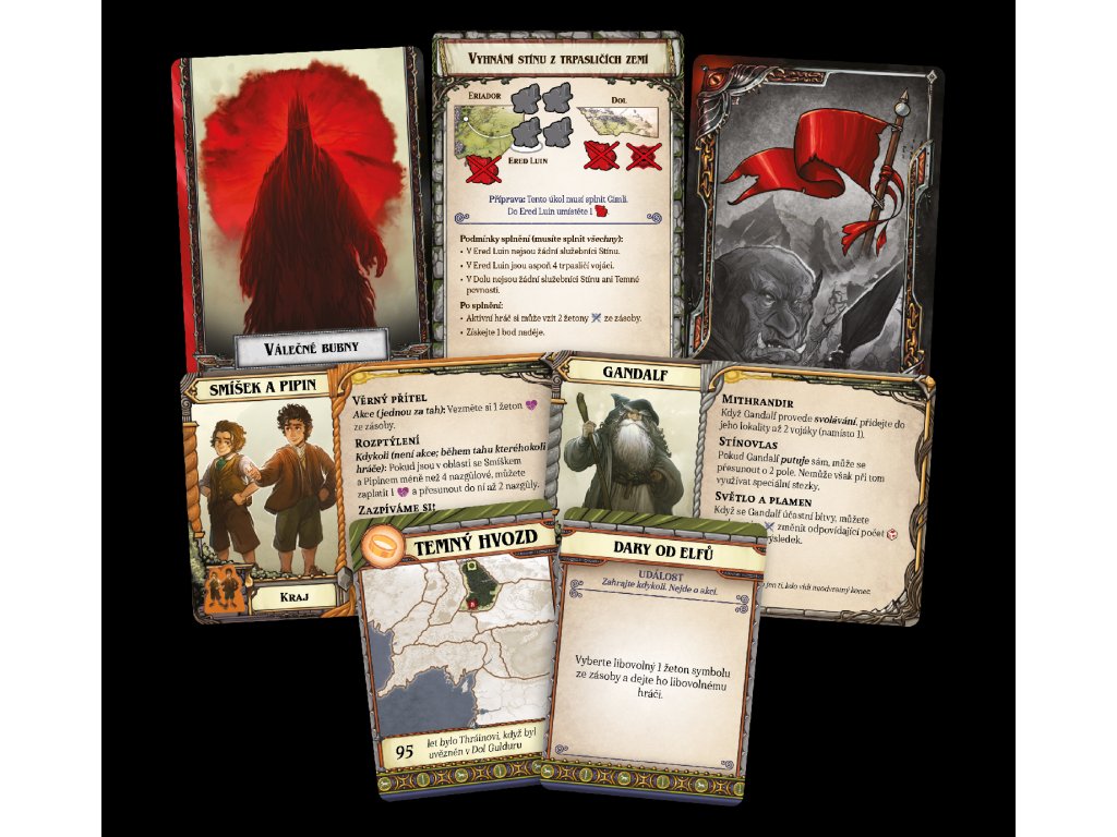 Vžijte se do členů společenstva a jeho věrných spojenců a vydejte se na výpravu, na jejímž konci bude Středozem spasena, nebo odsouzena k záhubě. Putujte krajinou tonoucí ve stínu, kde vám každé rozhodnutí otevře novou cestu. Nitky se splétají a osud svobodných národů závisí na vaší udatnosti, přátelství a odhodlání. Vhodíte Jeden prsten do žhavého jícnu Hory osudu, nebo jeho nositel propadne zoufalství?