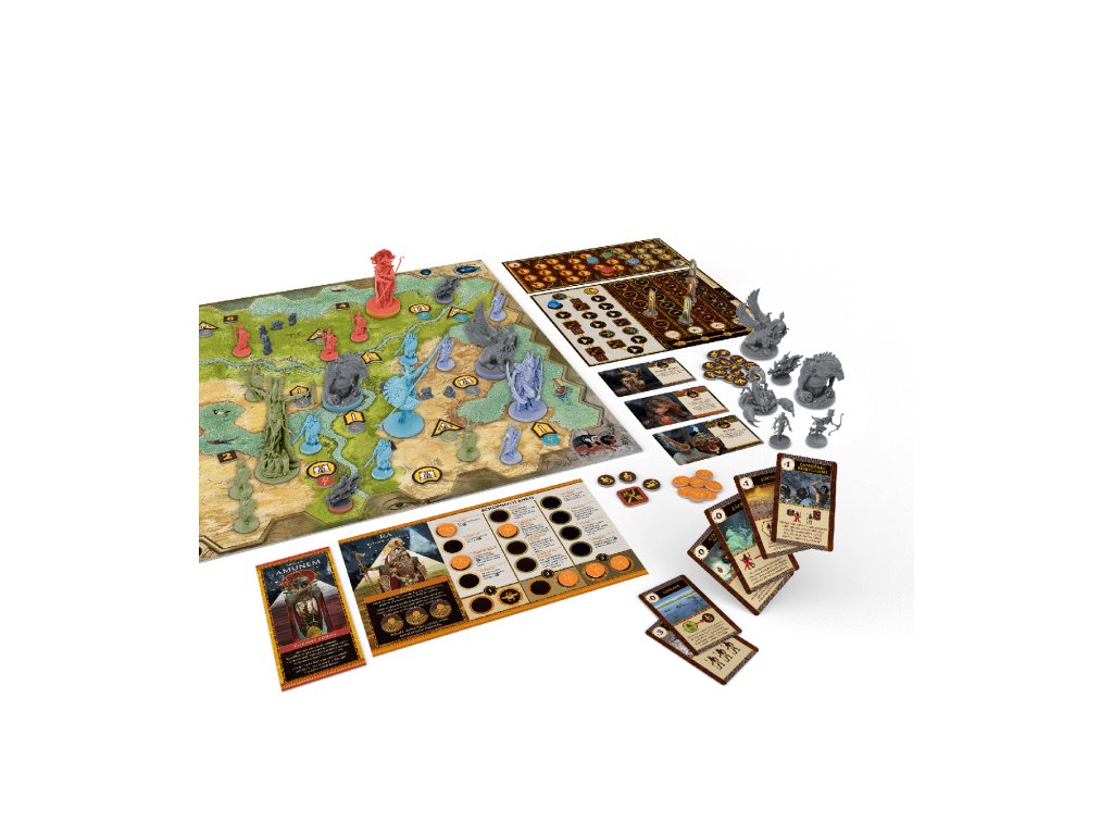 žetonů Ankh o 1 plastový drahokam o 1 hrací plán o 2 hlavní desky o 10 desek bohů o 46 karet o 197 žetonů