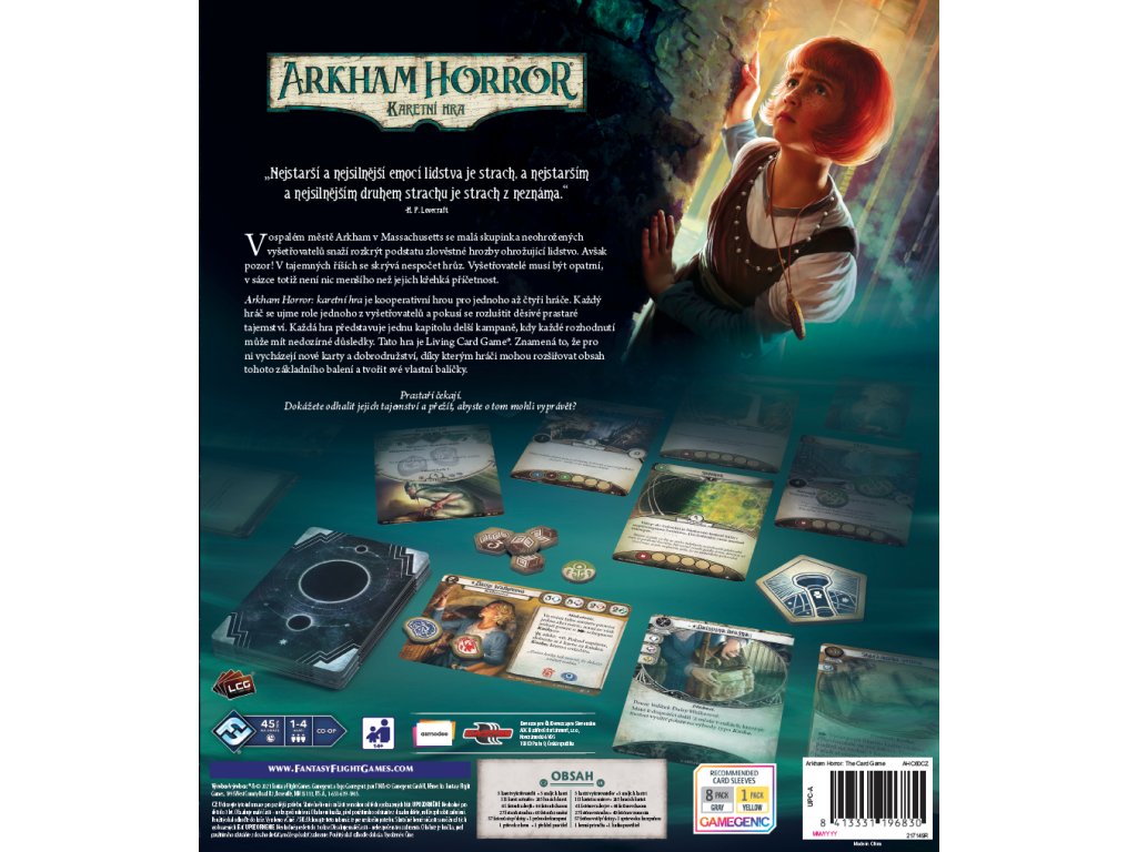 Arkham Horror: karetní hra je kooperativní Living Card Game® (LCG®), ve které se jeden až čtyři vyšetřovatelé společně snaží odhalit tajemné záhady a konspirace. Zároveň se při tom musí vypořádat s osobními démony, kteří je dlouho pronásledují.